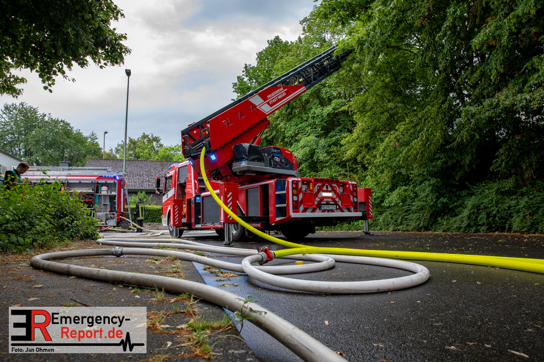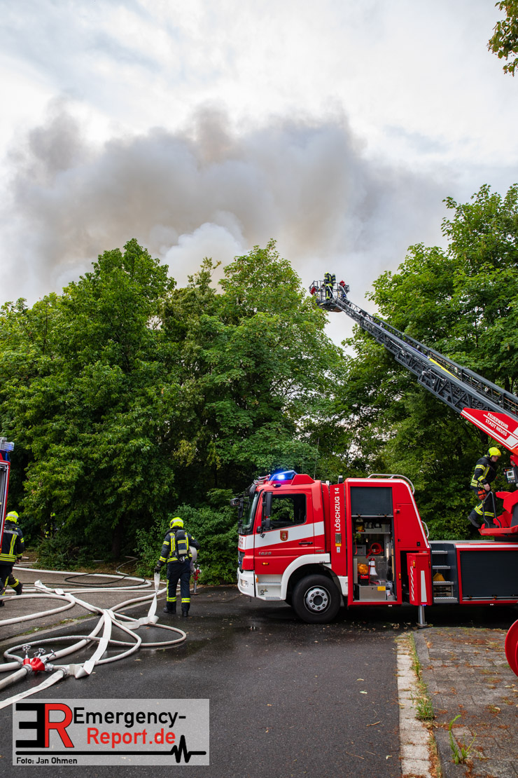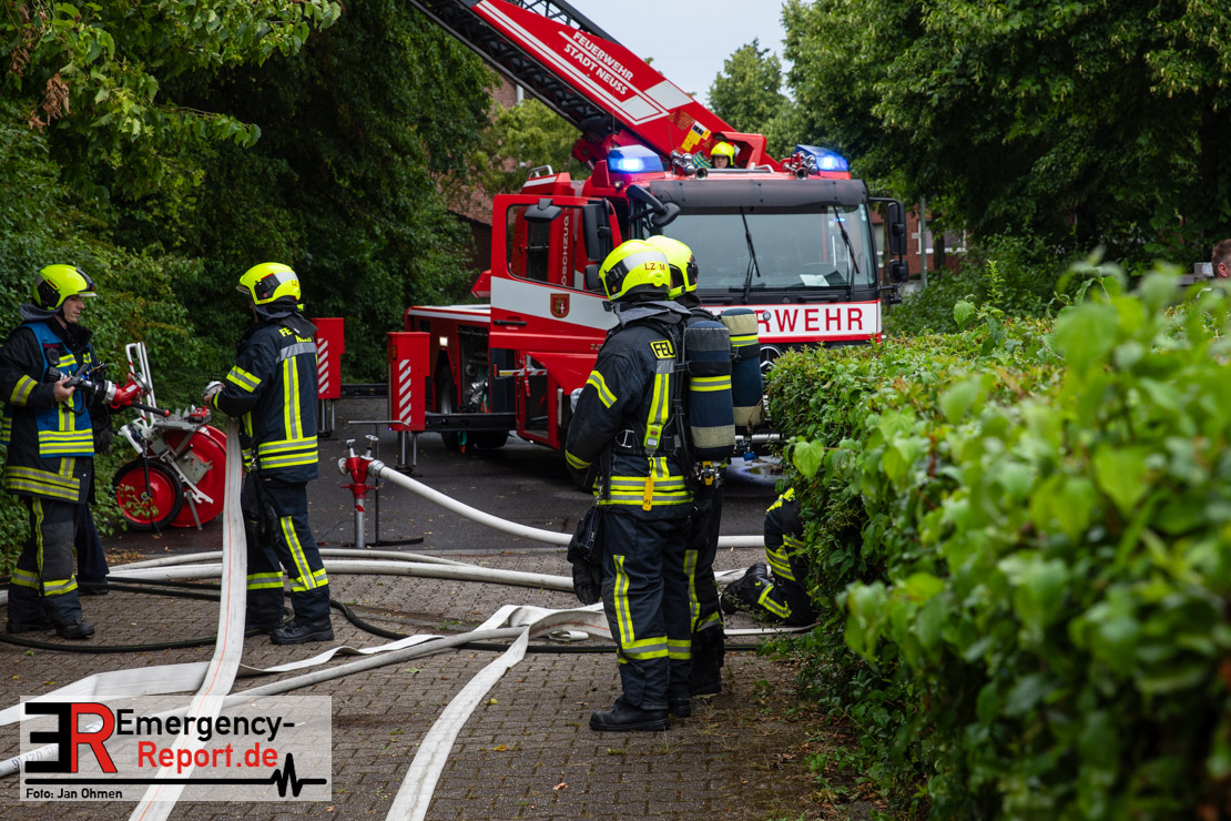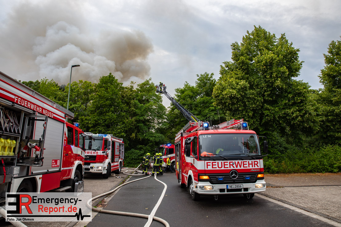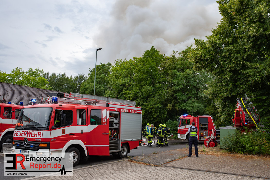 Rauchentwicklung die Bevölkerung über die Warn-App „NINA“ gewarnt. Das Gebäude brannte vollständig aus. Verletzt wurde niemand. Insgesamt waren 5 Löschzüge der Feuerwehr Neuss im Einsatz. Die Polizei hat die Ermittlungen zur Brandursache aufgenommen.