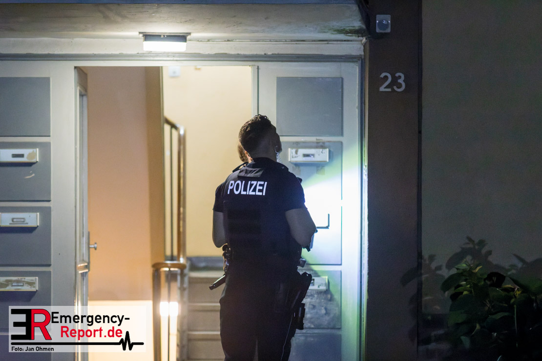 Am Freitag (11.07.) erhielt die Polizei gegen 16:30 Uhr Kenntnis von einem innerfamiliären Gewaltdelikt auf der Carl-Duisberg-Straße in Dormagen. In der Wohnung wurde ein schwerverletzter 30-jähriger Mann angetroffen. Bei der weiteren Absuche der Wohnung konnte zusätzlich eine leblose weibliche Person im Alter von 37 Jahren aufgefunden werden. Der Sohn, 17 Jahre alt, bei dem es sich nach ersten Erkenntnissen um den mutmaßlichen Täter handeln könnte, konnte nicht angetroffen werden.