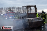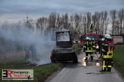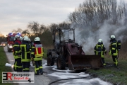 Die Feuerwehr Dormagen wurde gegen 16:45 Uhr in den Ortsteil Broich alarmiert. Dort hatte eine landwirtschaftliche Maschine auf einem Feld nahe der Broicher Dorfstraße Feuer gefangen. Schon auf der Anfahrt konnten die Einsätzkräfte eine Rauchentwicklung erkennen. Bei Eintreffen der Feuerwehr brannte ein Traktor in voller Ausdehnung. Der Fahrer konnte das Gefährt eigenständig verlassen und blieb unverletzt. Die Flammen konnten durch die Feuerwehr schnell erstickt werden.