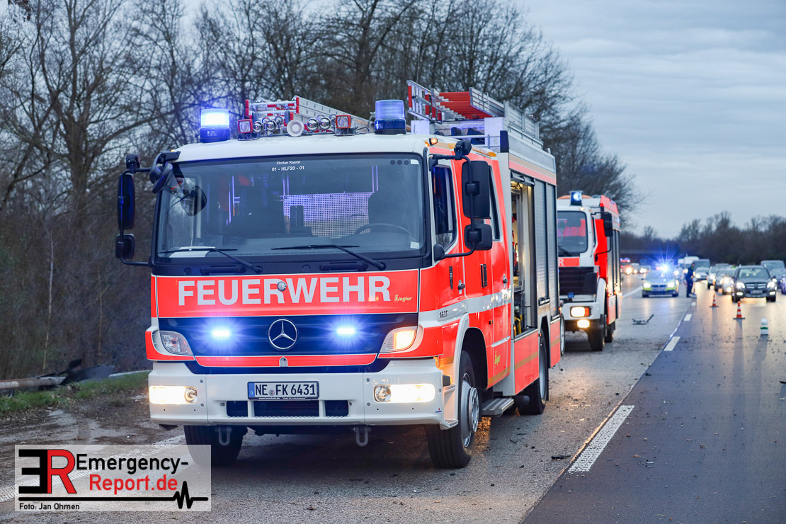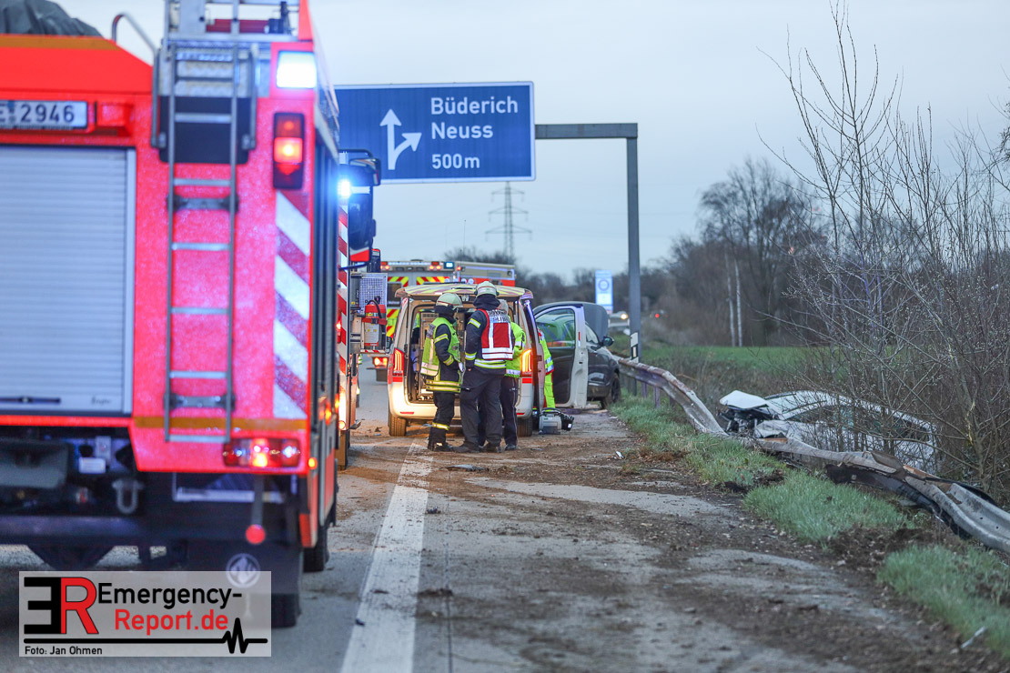 Zwei schwer verletzte und eine leicht verletzte Person sind das Resultat eines Verkehrsunfalls auf der A 52 in Höhe Meerbusch-Büderich. Zwei Pkw schleuderten durch einen Fehler beim Fahrstreifenwechsel über die Fahrbahn. Es kam zu Verkehrsstörungen.