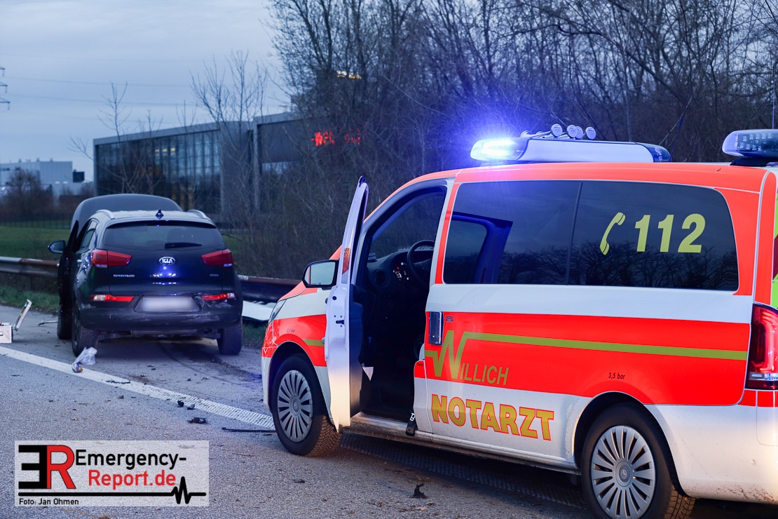 Am frühen Dienstagabend wechselte ein 50-Jähriger aus Velbert mit seinem Opel Zafira in Höhe der Anschlussstelle Büderich auf der A 52 von dem mittleren Fahrstreifen nach links und kollidierte dabei mit dem Pkw einer 27-jährigen Düsseldorferin.