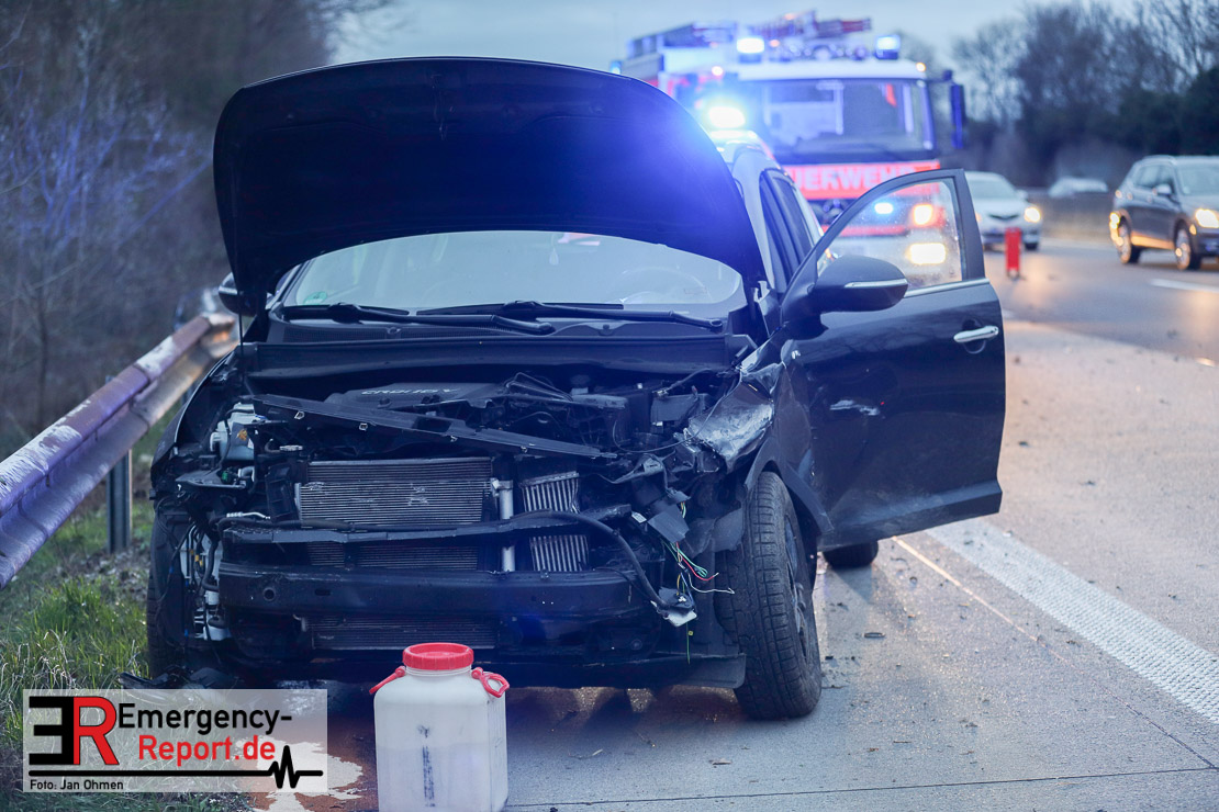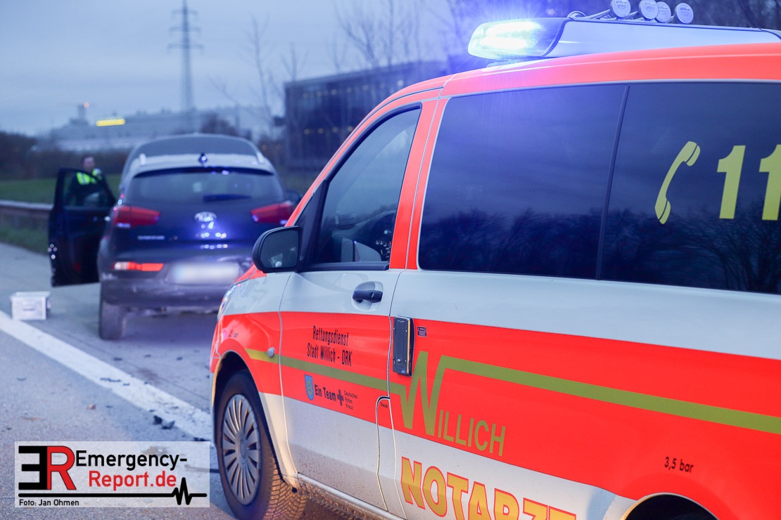 Durch den Zusammenstoß geriet das Fahrzeug des Unfallverursachers ins Schleudern und stieß anschließend mit dem Kia eines 40-Jährigen aus Meerbusch zusammen. Dieser befuhr zum Unfallzeitpunkt den mittleren Fahrstreifen. Das Auto des Velberters kam im Böschungsbereich zum Stehen. Der Pkw des 40-jährigen Fahrzeugführers prallte gegen eine Leitplanke.
