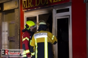 Nach derzeitigem Stand hat ein bislang Unbekannter, gegen kurz nach 4 Uhr, mit einem Gullydeckel eine Scheibe sowie die gläserne Eingangstür zu einem Imbiss eingeschlagen und im Weiteren einen Brandsatz ins Innere geworfen. Der Verdächtige soll sodann zu Fuß in Richtung Marienkirchplatz geflüchtet sein.