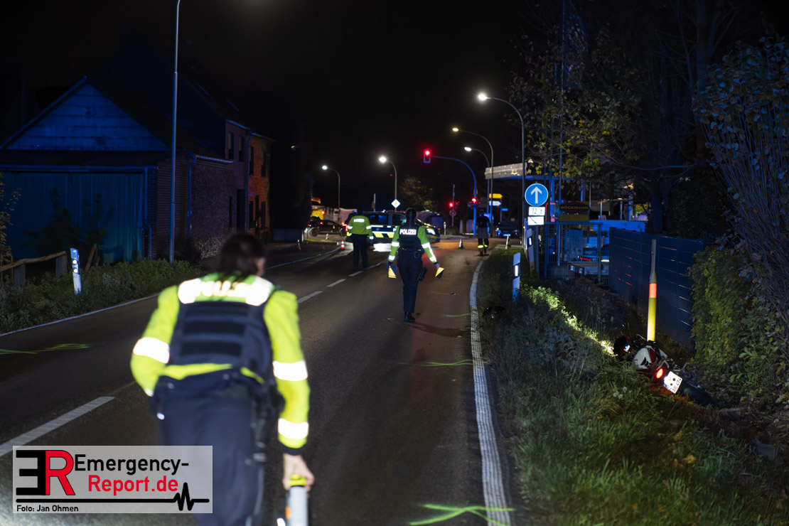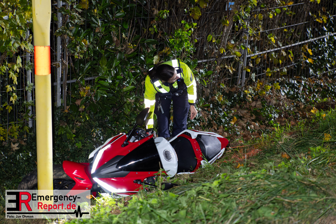 Der 22 Jahre alte Mann aus Grevenbroich und seine 20 Jahre alte Mitfahrerin aus Düsseldorf wurden bei dem Sturz schwer verletzt. Rettungskräfte transportierten sie zur stationären Behandlung in Krankenhäuser. Dabei kam für den Grevenbroicher ein Rettungshubschrauber zum Einsatz.