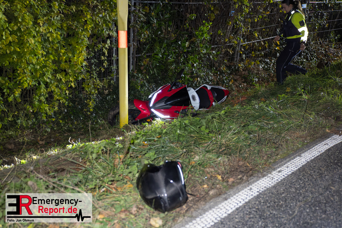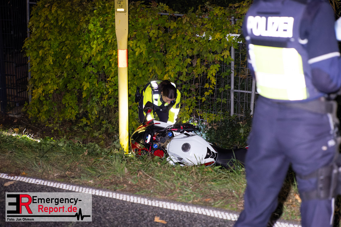 Ein Motorradfahrer und seine Mitfahrerin sind am Donnerstagabend (13.11.), gegen 21:10 Uhr, bei einem Verkehrsunfall auf der Landstraße 142 schwer verletzt worden.