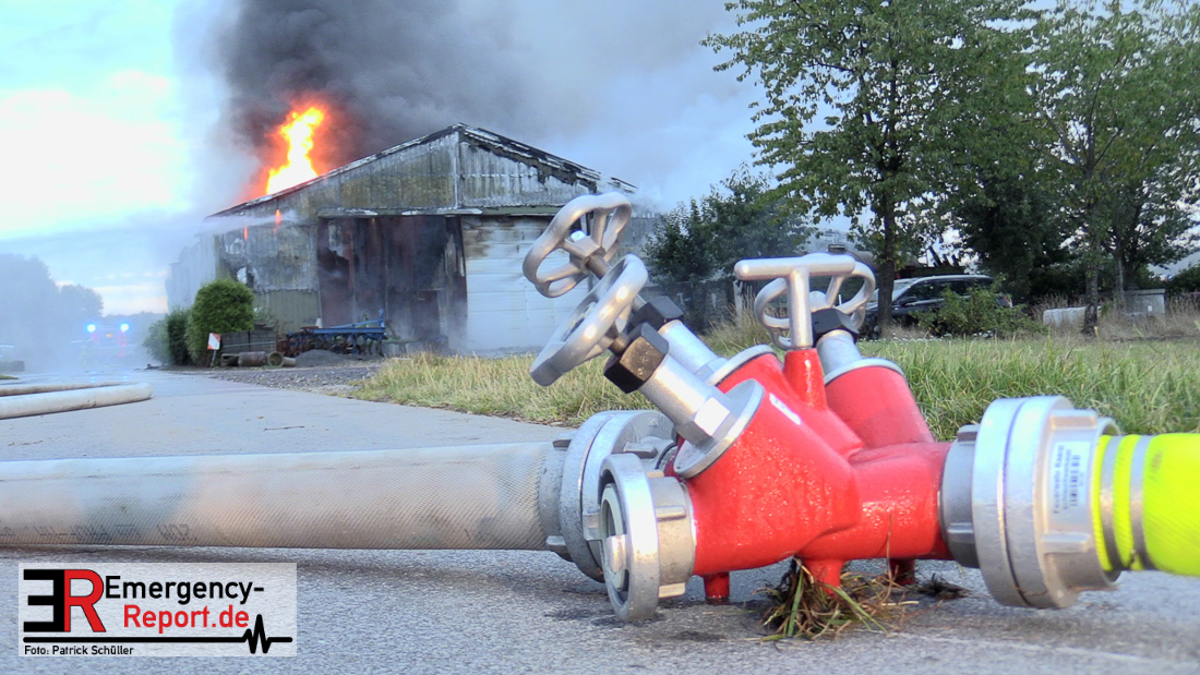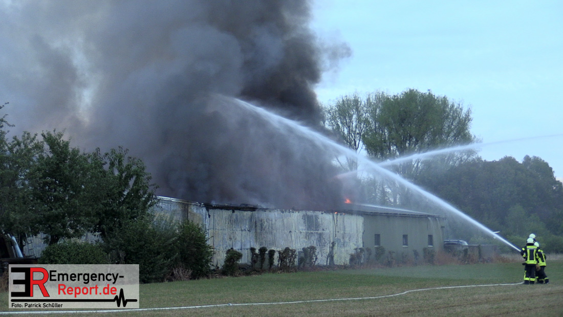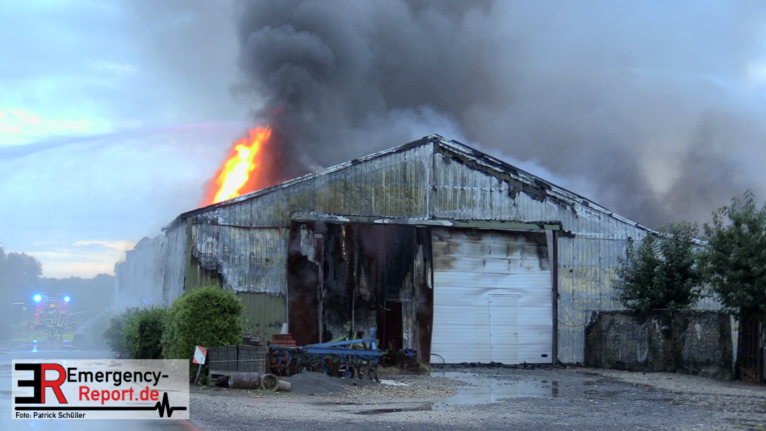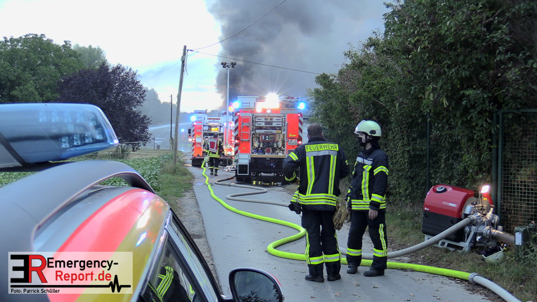 Mit rund 100 Kräften sind wir seit dem frühen Morgen an der Schiefbahner Straße im Einsatz. Die Alarmierung erfolgte um 5.33 Uhr. Dort stand eine 15 mal 30 Meter große Lagerhalle im Vollbrand. Es gab mehrere Explosionen, vermutlich durch Propangasflaschen. Die Halle dient als Lager von landwirtschaftlichem Gerät. Seit 6.40 Uhr haben wir das Feuer unter Kontrolle. Wegen des deutlich wahrnehmbaren Brandgeruchs und der mehr als 100 Meter hohen Rauchsäule haben wir über die Warn-App NINA die Bevölkerung alarmiert und Messungen in den umliegenden Bereichen durchgeführt. Sowohl in den Wohngebieten als auch an den Vorster Schulen wurde kein Grenzwert überschritten, die Warnung ist mittlerweile aufgehoben. Derzeit gilt unser Hauptaugenmerk einem Tank mit 2000 Liter Heizöl. Der Tank ist beschädigt. Eine Brandgefahr besteht nicht. Unterstützt durch den städtischen Baubetriebshof erstellen wir Sandwälle, um ein Einsickern des Öls zu verhindern. Die Wasserschutzbehörde und das Klärwerk sind eingebunden, da mit Öl verschmutztes Löschwasser in die Kanalisation geflossen ist. Wir möchten uns herzlich bei den Kollegen der Feuerwehr Neuss für Ihre Unterstützung vor Ort bedanken.