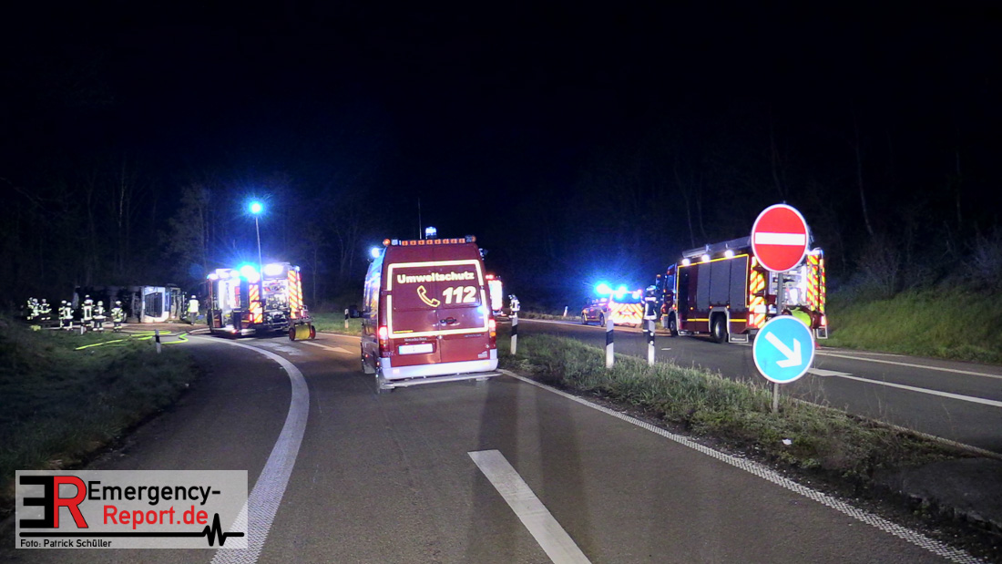 Da aus dem Silo-Auflieger flüssige Biomasse und Betriebsmittel ausgelaufen waren, musste die Ausfahrt für die Bergungs- und Reinigungsmaßnahmen bis etwa 12 Uhr gesperrt werden. Es entstand ein Sachschaden von circa 400.000 Euro.