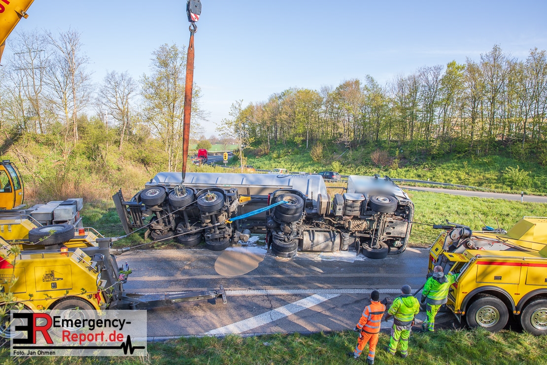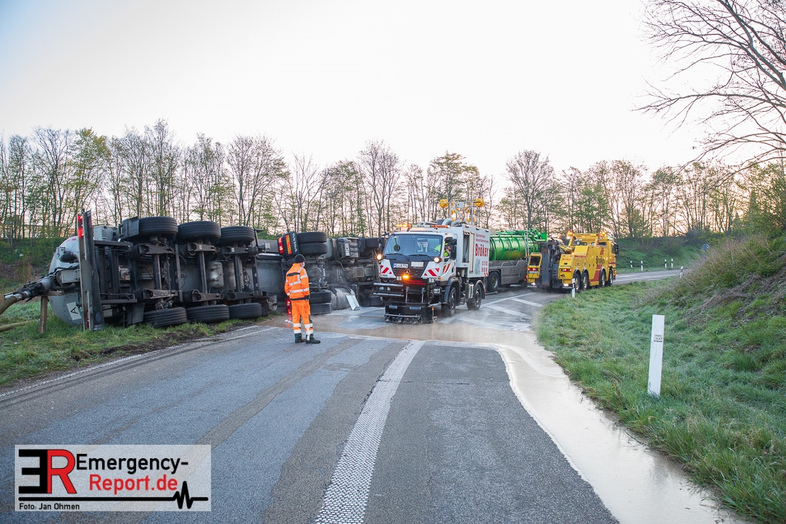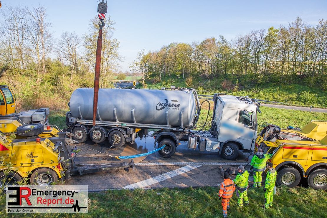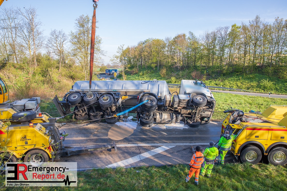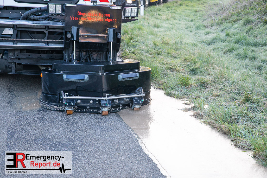 Da aus dem Silo-Auflieger flüssige Biomasse und Betriebsmittel ausgelaufen waren, musste die Ausfahrt für die Bergungs- und Reinigungsmaßnahmen bis etwa 12 Uhr gesperrt werden. Es entstand ein Sachschaden von circa 400.000 Euro.
