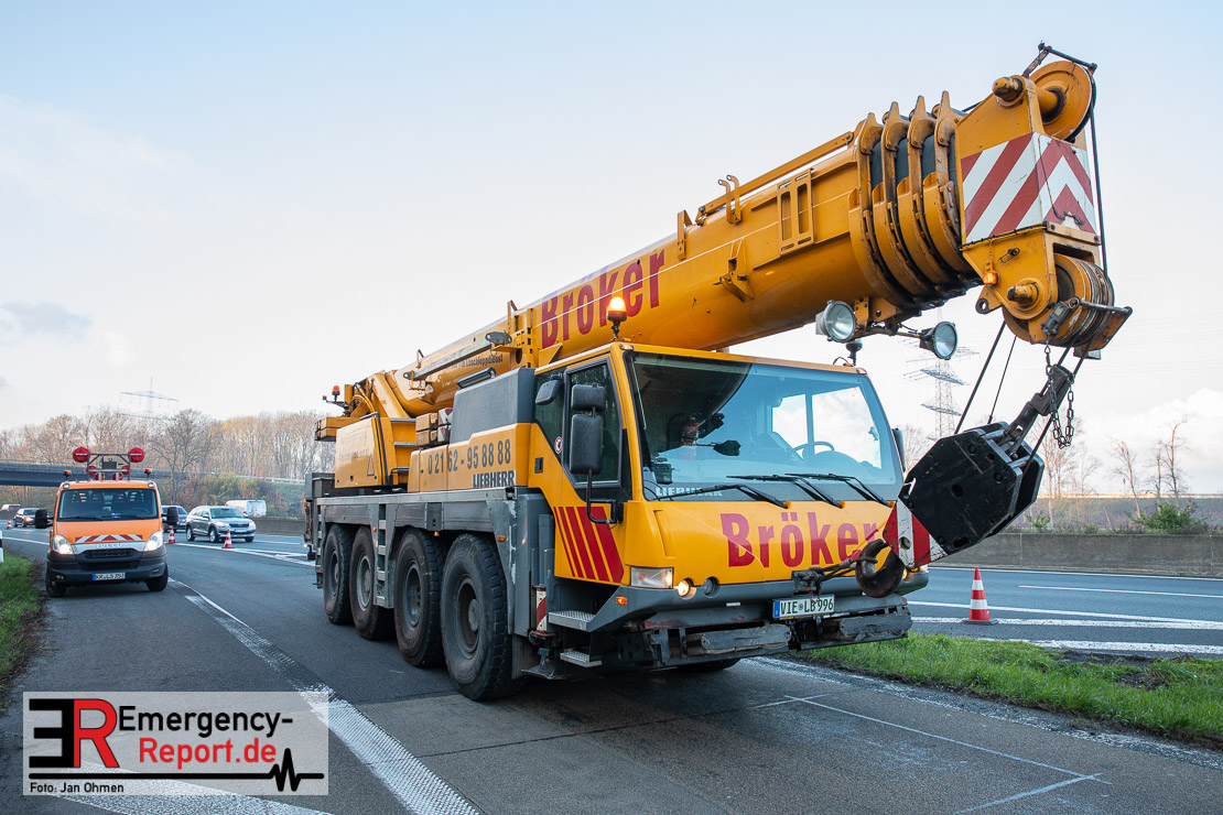 In der Nacht zu heute verletzte sich ein Lkw-Fahrer bei einem Verkehrsunfall auf der A 57 bei Dormagen leicht, nachdem er mit seinem Fahrzeug von der Fahrbahn abgekommen und der Lkw in der Folge umgekippt war. Die Ausfahrt Dormagen musste für die Bergungs- und Reinigungsmaßnahmen gesperrt werden.