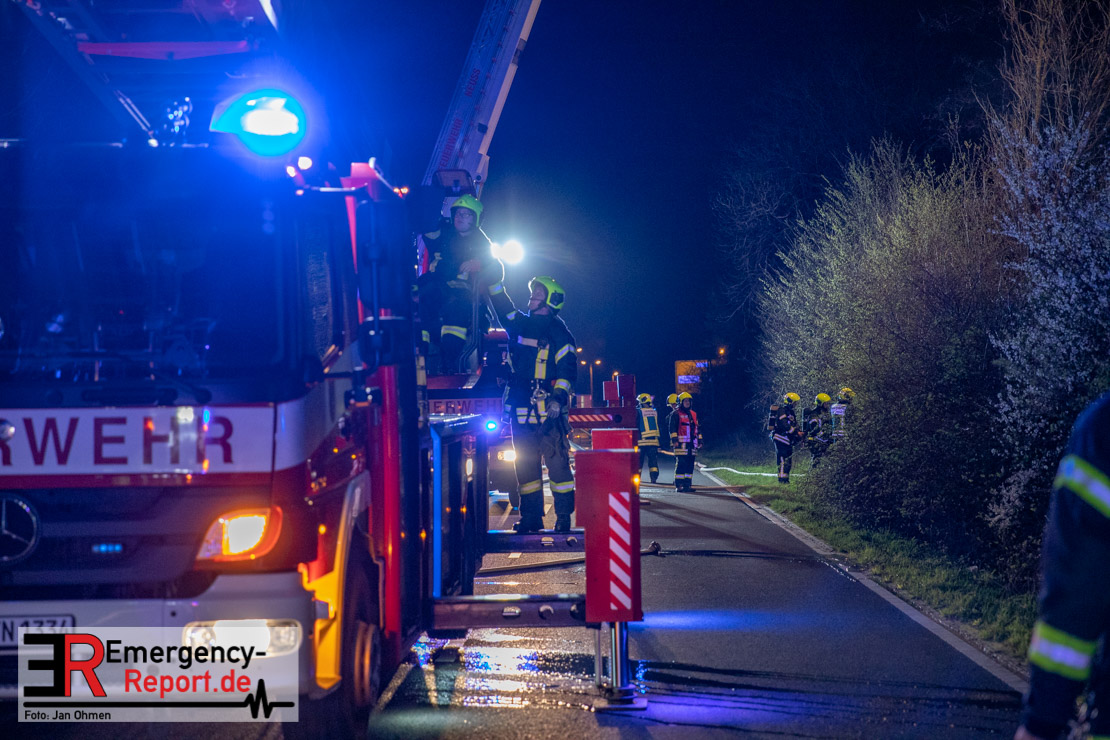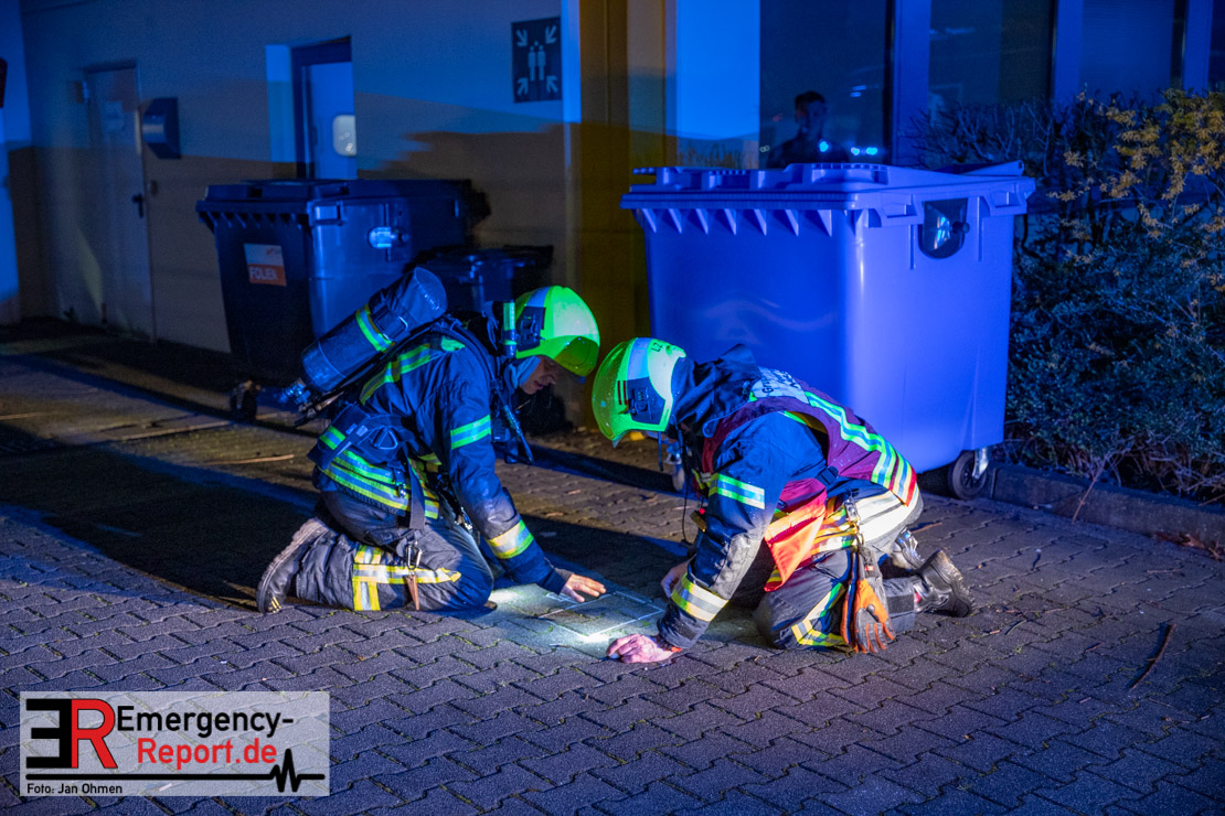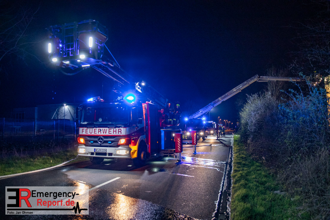 Die Straßen „Sperberweg“ und „Am Blankenwasser“ mussten für die Dauer der Löscharbeiten gesperrt werden. Eine Einsatzkraft wurde bei dem Einsatz leicht verletzt und wurde vom Rettungsdienst versorgt. Insgesamt sind 64 Einsatzkräfte der Feuerwehr und des Rettungsdienstes im Einsatz, weitere Kräfte sind auf der Hauptwache in Bereitschaft.