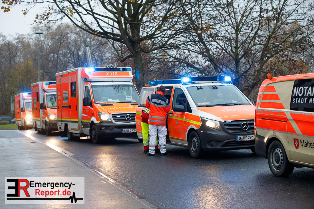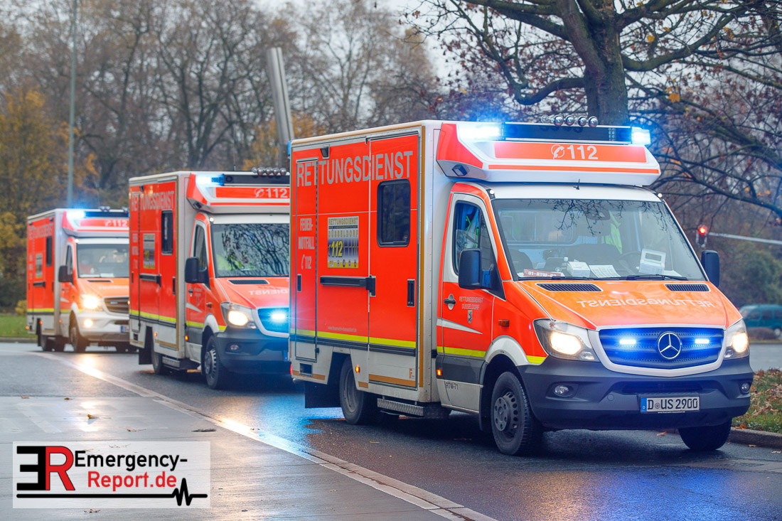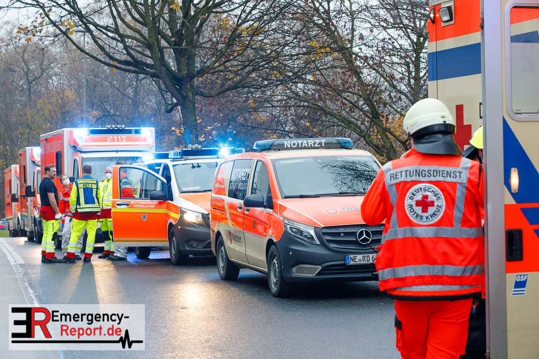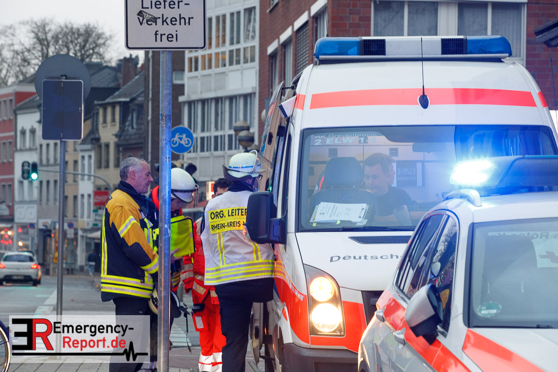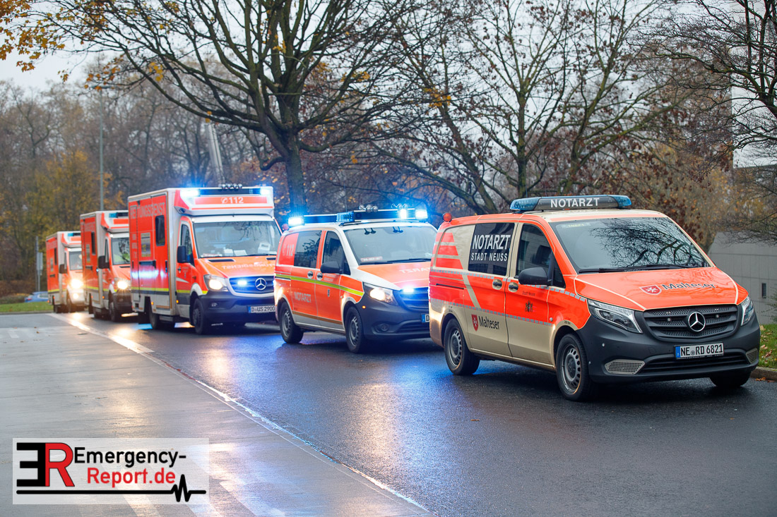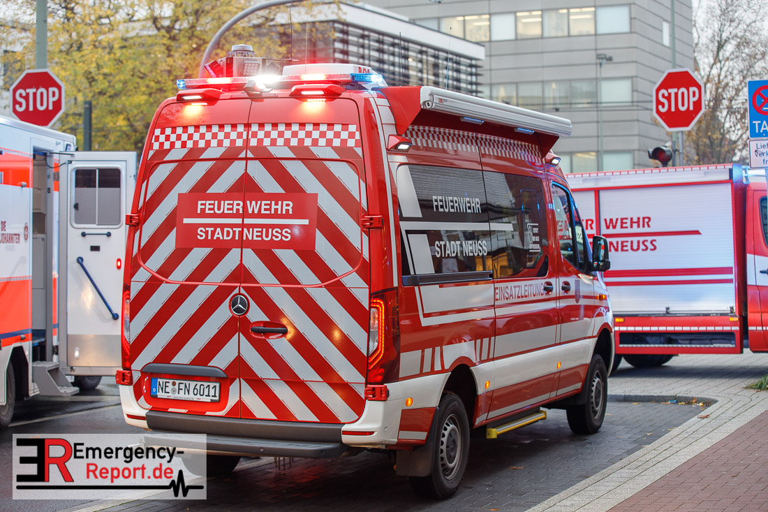 Am 17.11.2021 wurde die Feuerwehr um 15:10 Uhr zu einem Geschäftshaus an der Oberstraße gerufen. Dort war im Keller ein Feuer ausgebrochen. Bei Eintreffen der Einsatzkräfte gab es eine Rauchentwicklung aus der Eingangstüre des Gebäudes, erste Erkundungen ergaben einen Brand im Kellerbereich des Treppenraumes. Noch während der Erkundung flüchteten einige Personen aus den oberen Geschossen über den Treppenraum ins Freie, diese wurden durch die Feuerwehr gesammelt betreut. Der Brand wurde von einem Trupp unter schwerem Atemschutz gelöscht, gebrannt hatte eine Papiertonne im Keller unter dem Treppenabsatz. Aufwändig gestaltete sich die anschließende Kontrolle und Entrauchung des Gebäudes, da für viele Bereiche zunächst keine Schlüssel verfügbar waren. Am Ende konnten aber alle Räumlichkeiten kontrolliert und maschinell entraucht werden. Die betroffenen Personen, deren Anzahl mit der Zeit immer weiter anwuchs, wurden in der Zwischenzeit vom Rettungsdienst gesichtet. Insgesamt wurden 17 Personen untersucht und rettungsdienstlich betreut. Zur Bewältigung der rettungsdienstlichen Lage wurde zwischenzeitlich der Leitende Notarzt und der organisatorische Leiter Rettungsdienst sowie eine Rettungsdienstkomponente aus Düsseldorf, die aus mehreren Rettungswagen und einem Notarzt besteht, hinzugezogen. Glücklicherweise konnten alle 17 Personen nach einer Untersuchung nach Hause entlassen werden.