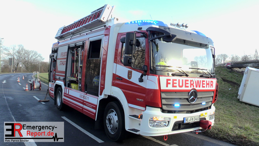 Am gestrigen Donnerstag, den 20.01.2022, forderten zwei schwere LKW Unfälle mehrere Löschzüge der Feuerwehr Neuss über viele Stunden an zwei unterschiedlichen Einsatzstellen im Stadtgebiet.