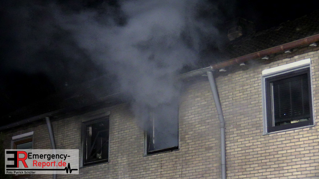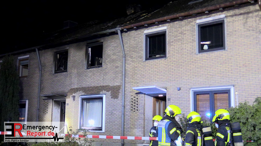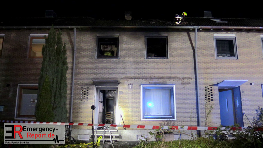 Bei Eintreffen der ersten Kräfte bestätigte sich die Meldung. Ein zwei geschossiges Reihenhaus stand in Vollbrand. Die Flammen drohten auf die angrenzenden Gebäude überzugreifen. Eine Person wurde vermisst.