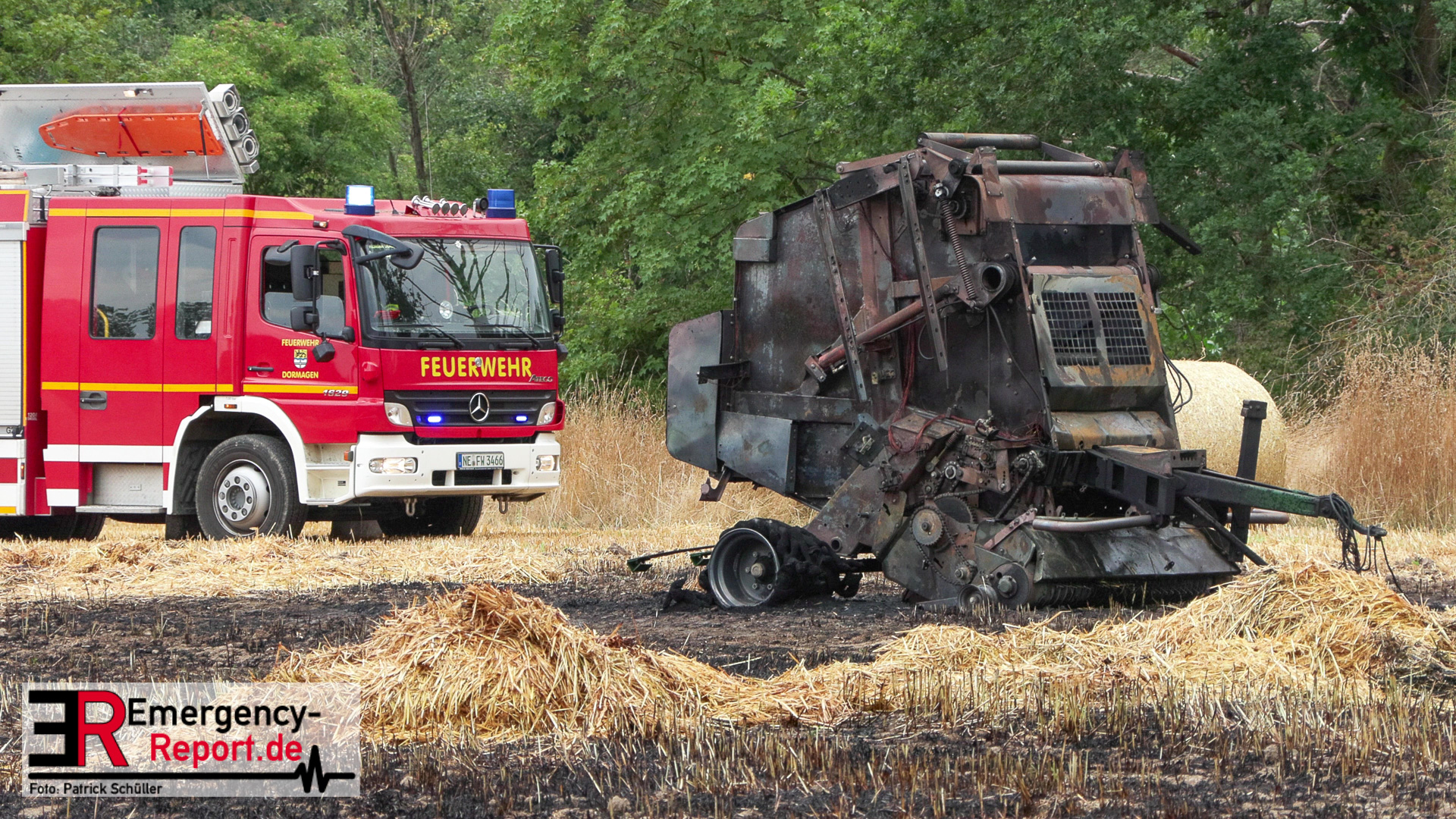 Um 14:48 Uhr (21.07.2023) wurden wir von der Einheitlichen Leitstelle des Rhein-Kreises Neuss zu einem Feldbrand nach Ückerath alarmiert. In der Feldflur zwischen „Ückerather Graben“ und „Norfbach“ (beide nicht wasserführend) ist bei Erntearbeiten eine Rundballenpresse in Brand geraten. Durch den Wind angefacht breitete sich das Feuer auf rund 500m² Stoppelfeldfläche und 8 der dort bereits fertig liegenden Strohrundballen aus.