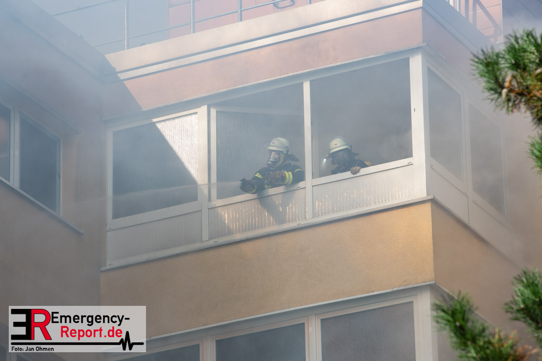 Die Feuerwehr Kaarst wurde am Nachmittag des 21.10.2023 zu einer Feuermeldung, auf die Platanenstraße, alarmiert. Bei Eintreffen der ersten Einsatzkräfte stellte sich heraus, dass eine Wohnung, im 5. Obergeschoss eines großen Mehrfamilienhauses, in voller Ausdehnung brannte. Unverzüglich wurde die Menschenrettung und der Löschangriff eingeleitet. Einige Bewohner wurden über ein Baugerüst gerettet. Aufgrund der vorgefundenen Lage wurde die Alarmstufe erhöht. 47 Betroffene wurden durch den Rettungsdienst betreut. 6 Verletzte wurden nach rettungsdienstlicher Behandlung in Krankenhäuser transportiert. Insgesamt waren etwa 150 Einsatzkräfte vor Ort. Rund um die Einsatzstelle kam es zu Verkehrsbehinderungen. Die Polizei hat die Ermittlungen zur Brandursache aufgenommen.