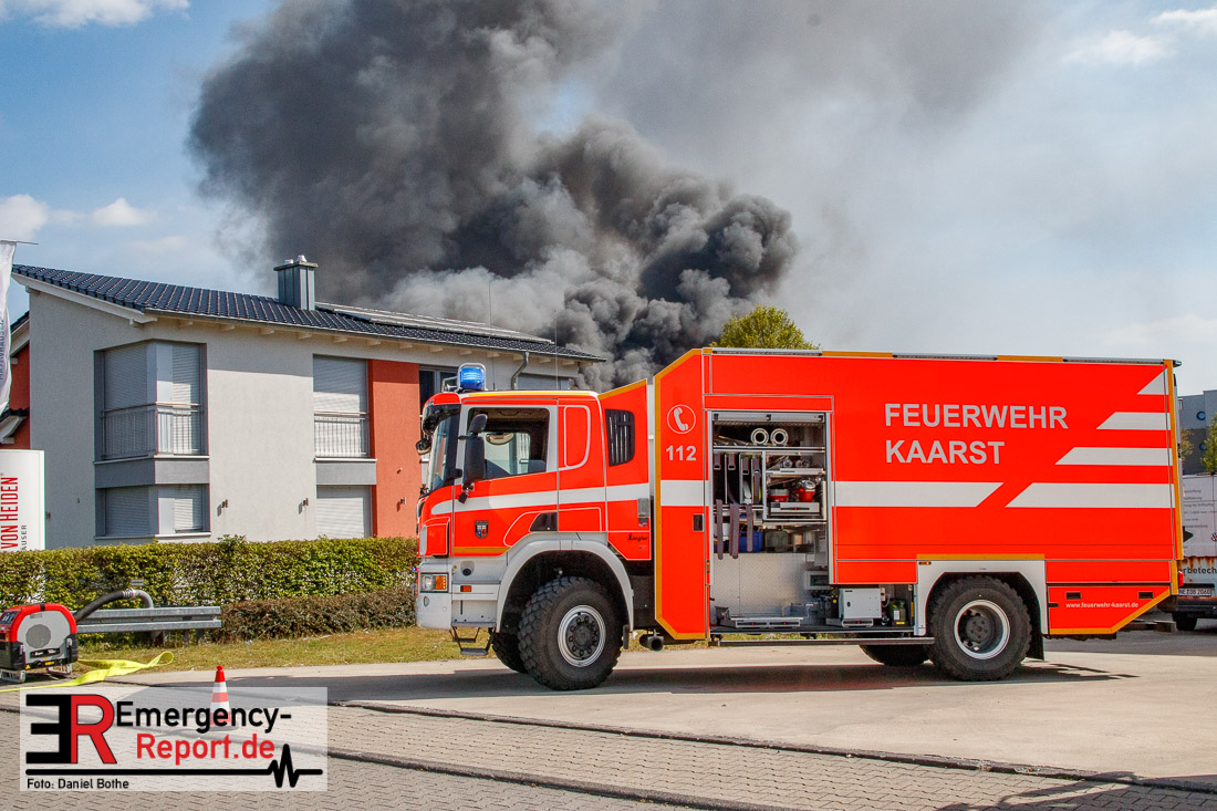 Wie auch bereits die Feuerwehr berichtete, kam es bedingt durch einen Brand auf einem Firmengelände am Holzbüttgener Weg, an der Bereichsgrenze zu Kaarst, am Donnerstag (22.4.) gegen 14:30 Uhr zu einer massiven Rauchentwicklung, die weit über die Stadtgrenzen hinaus zu sehen war. Der Einsatz der Feuerwehr am Holzbüttgener Weg dauert derzeit noch an.