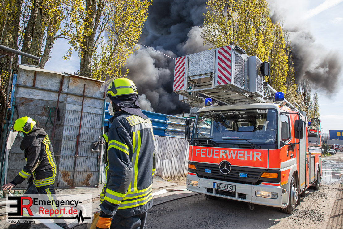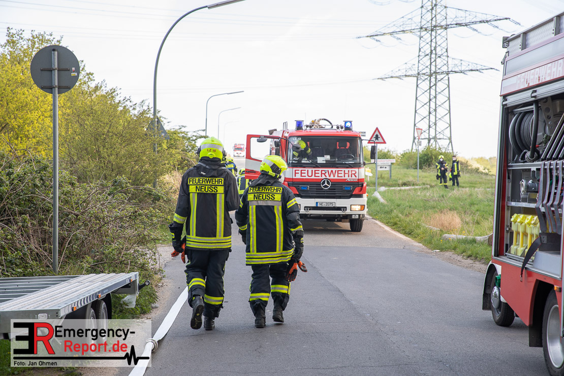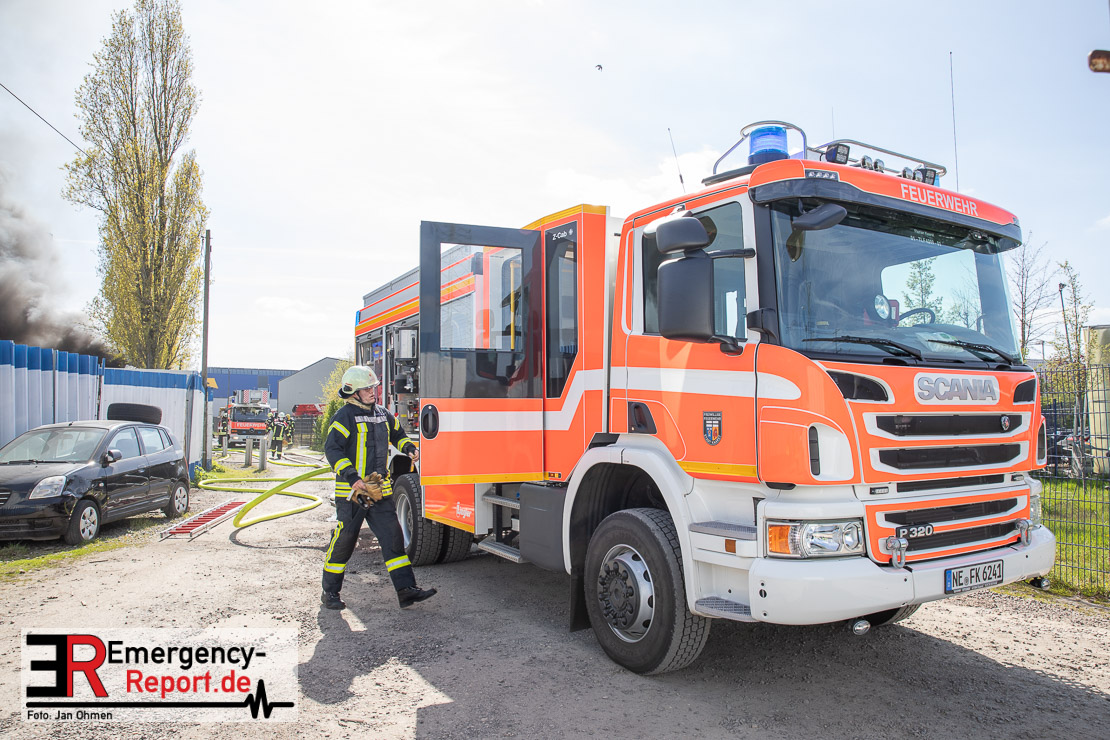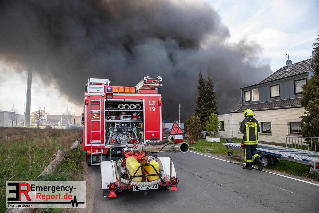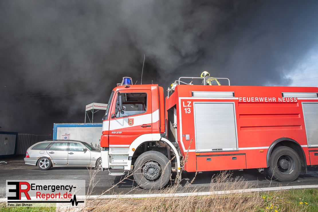 Das Feuer auf dem Schrottplatz begann um 14:26 Uhr am 22.04.2021 mit der Meldung „FEU_PKW“ und forderte im weiteren Verlauf die Feuerwehren aus dem Rhein-Kreis Neuss in vielerlei Hinsicht. So mussten in der Anfangszeit des Einsatzes mit etwa 180 Kräften vor Ort eine Ausbreitung auf weitere Teile des Schrottplatzes verhindert werden. Das Feuer breitete sich rasant aus, da die auf dem Schrottplatz gelagerten Autowracks, Autoteile, Reifen sowie Wohn- und Arbeitscontainer eine optimale Grundlage für das Feuer boten.