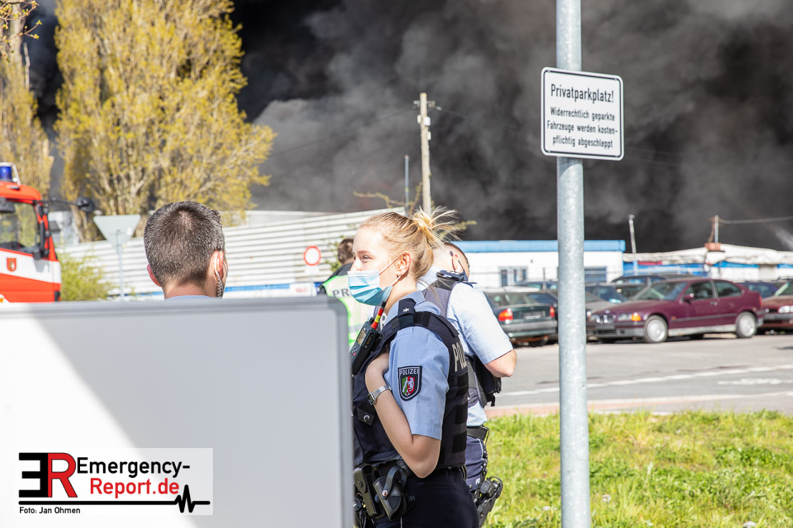 Erstmeldung 17:52 Uhr: Bedingt durch einen Brand auf einem Schrottplatz am Holzbüttgener Weg an der Stadtgrenze zu Kaarst kam es gegen 14:30 Uhr (22.04.2021) zu einer massiven Rauchentwicklung, die weit über die Stadtgrenzen zu sehen war.