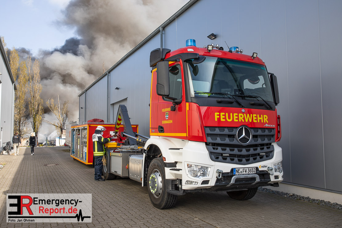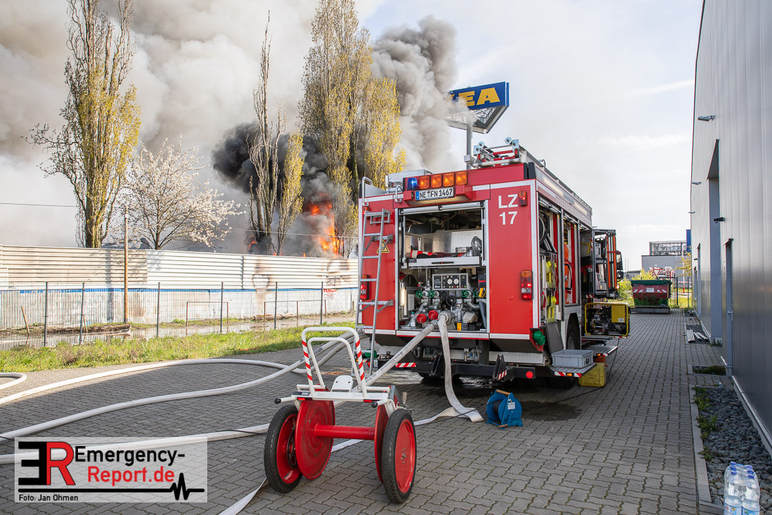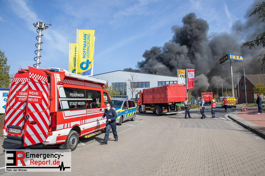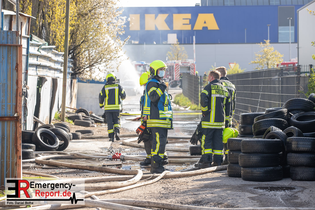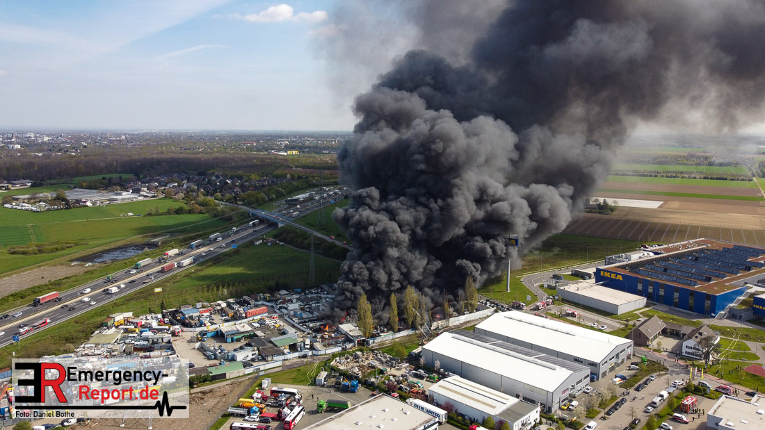 Das Feuer auf dem Schrottplatz begann um 14:26 Uhr am 22.04.2021 mit der Meldung „FEU_PKW“ und forderte im weiteren Verlauf die Feuerwehren aus dem Rhein-Kreis Neuss in vielerlei Hinsicht. So mussten in der Anfangszeit des Einsatzes mit etwa 180 Kräften vor Ort eine Ausbreitung auf weitere Teile des Schrottplatzes verhindert werden. Das Feuer breitete sich rasant aus, da die auf dem Schrottplatz gelagerten Autowracks, Autoteile, Reifen sowie Wohn- und Arbeitscontainer eine optimale Grundlage für das Feuer boten.