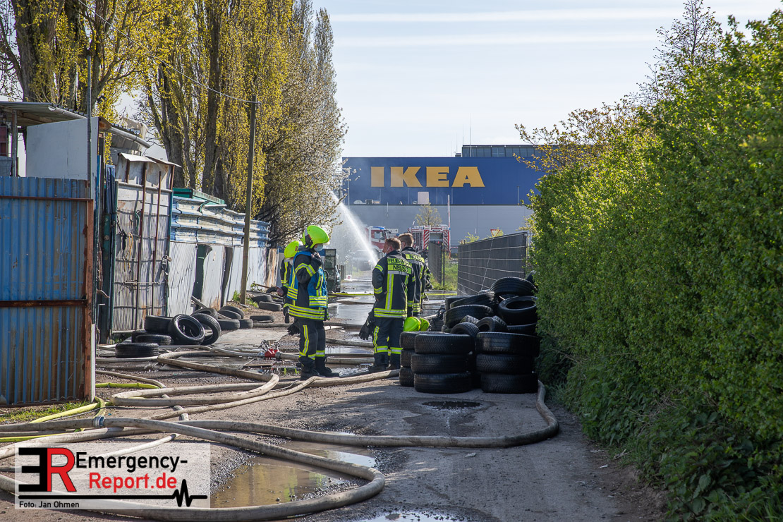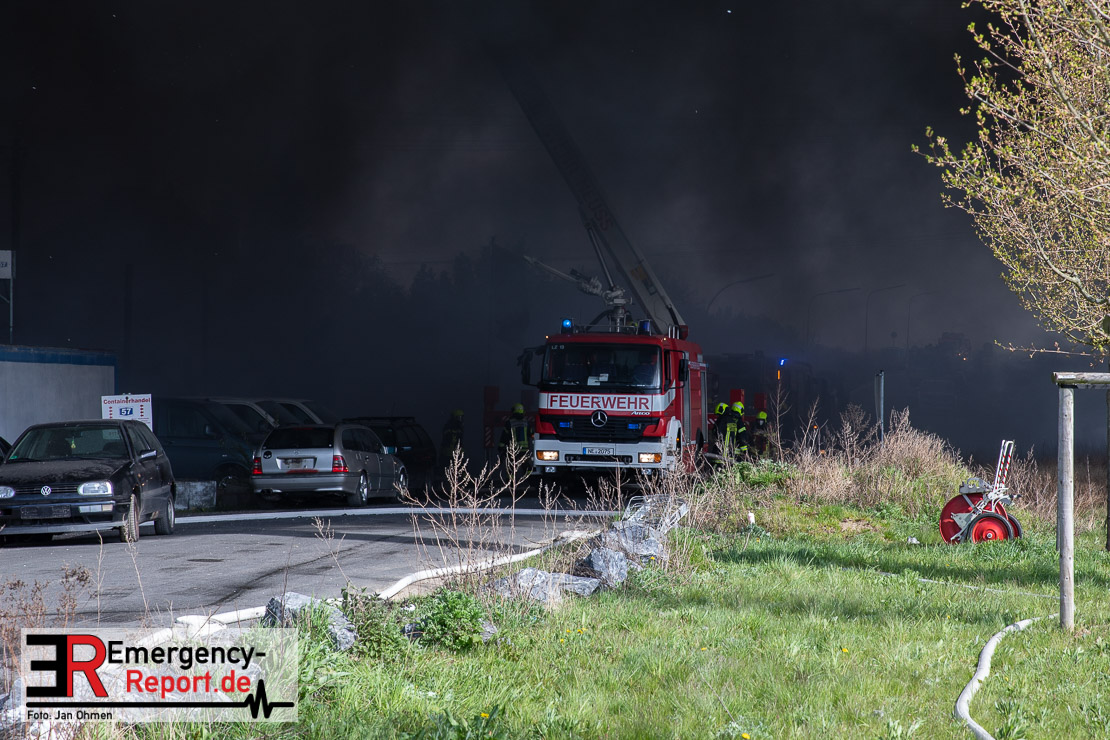 Dank dem massivem Kräfteansatz und dem Einsatz jedes Einzelnen konnte eine Ausbreitung auf ein Wohnhaus sowie weitere Teile des Schrottplatzes verhindert werden. Eine Herausforderung stellte die Löschwasserversorgung vor Ort dar, da der Wasserverbrauch von etwa 10.000 Litern Wasser pro Minute das Leitungsnetz überforderte. Zur Abhilfe unterstützte uns temporär ein in direkter Nachbarschaft liegendes „blaues Möbelhaus“ mit Wasser aus ihrer Löschanlage. Doch waren auch diese Ressourcen in Form von etwa 400 Kubikmetern Löschwasser nach einiger Zeit aufgebraucht. Sie halfen aber dabei, Zeit zu gewinnen und parallel eine weitere Löschwasserversorgung über das Hydranten-Netz aufzubauen.