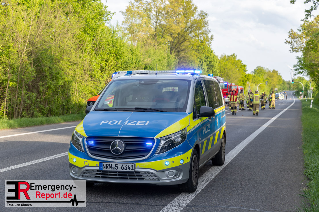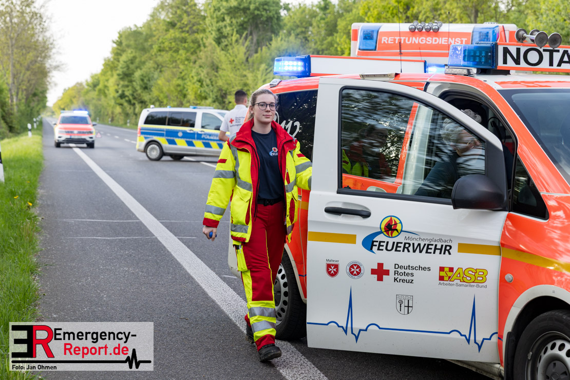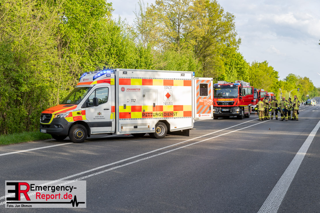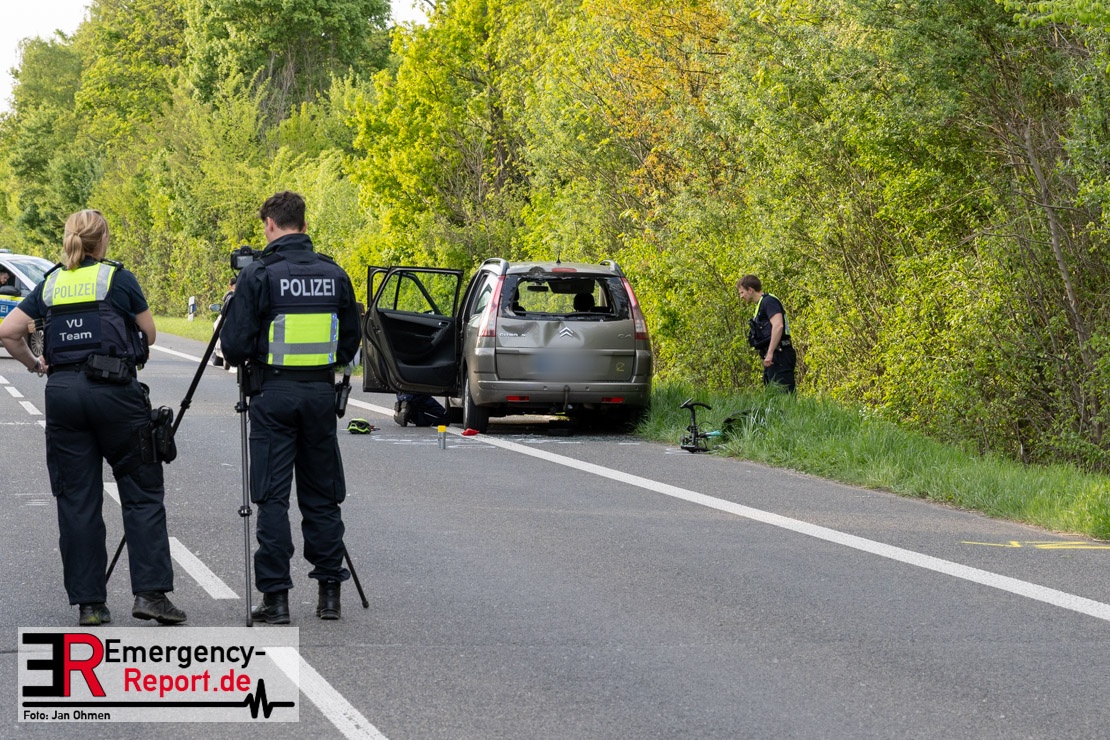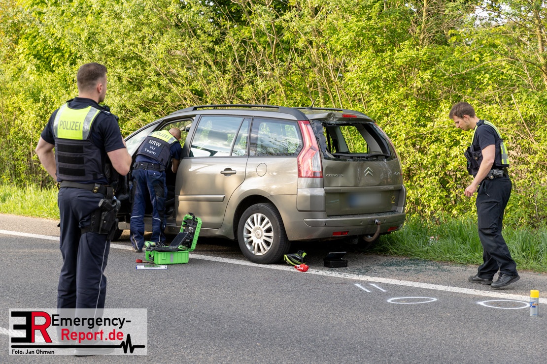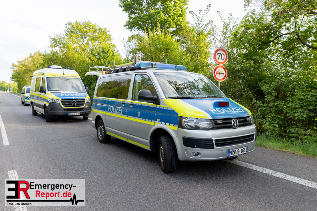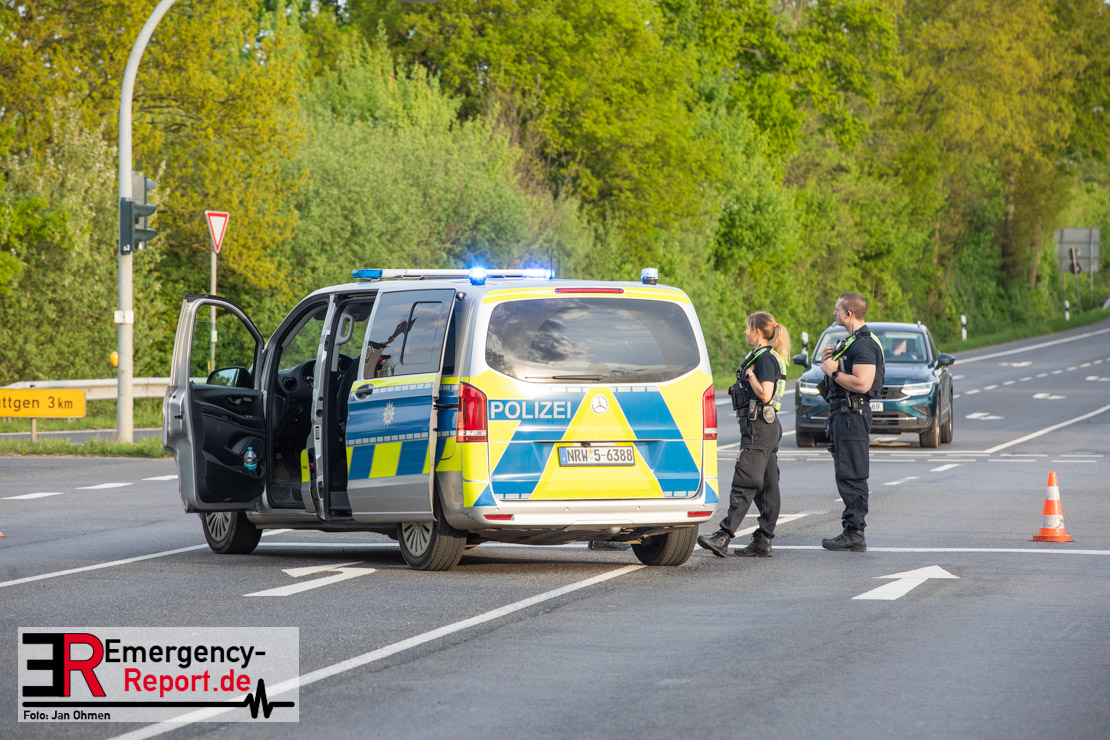 Nach aktuellen Erkenntnissen befuhr ein 55-jähriger Korschenbroicher mit seinem Rennrad die L361 aus Richtung Grevenbroich kommend. Etwa in Höhe der Kreuzung zur L32 kollidierte der Radfahrer aus unbekannter Ursache mit einem auf dem Seitenstreifen stehenden Pkw. Durch den Zusammenstoß erlitt der Korschenbroicher lebensgefährliche Verletzungen und wurde mit einem Rettungshubschrauber in ein Krankenhaus verbracht. Eine in dem Pkw befindliche fünfköpfige Familie im Alter zwischen 5 und 38 Jahren, blieb unverletzt.