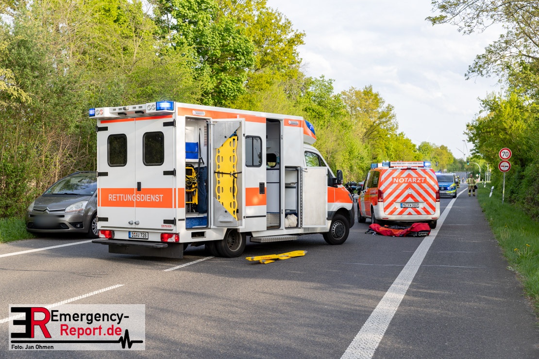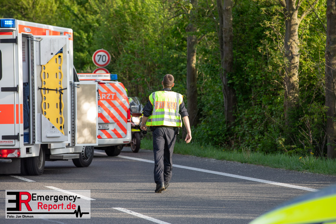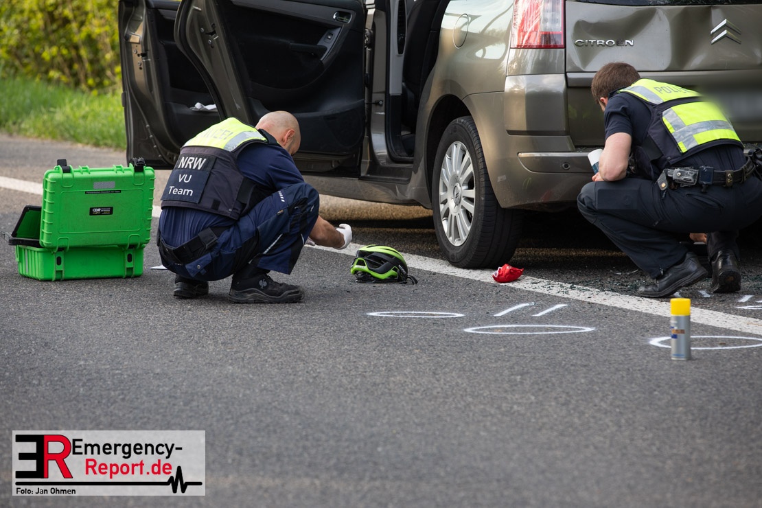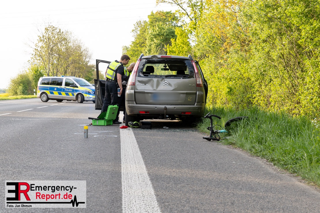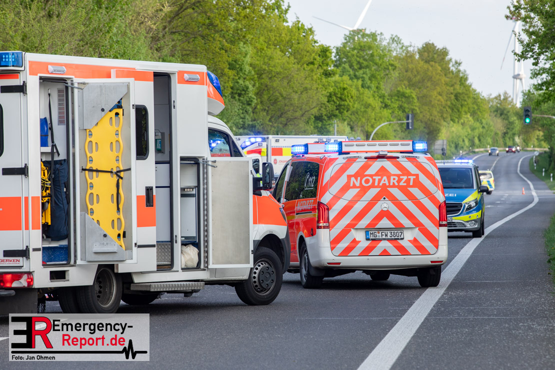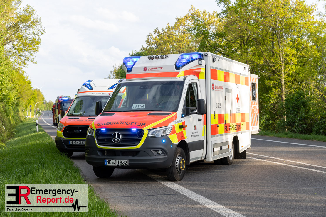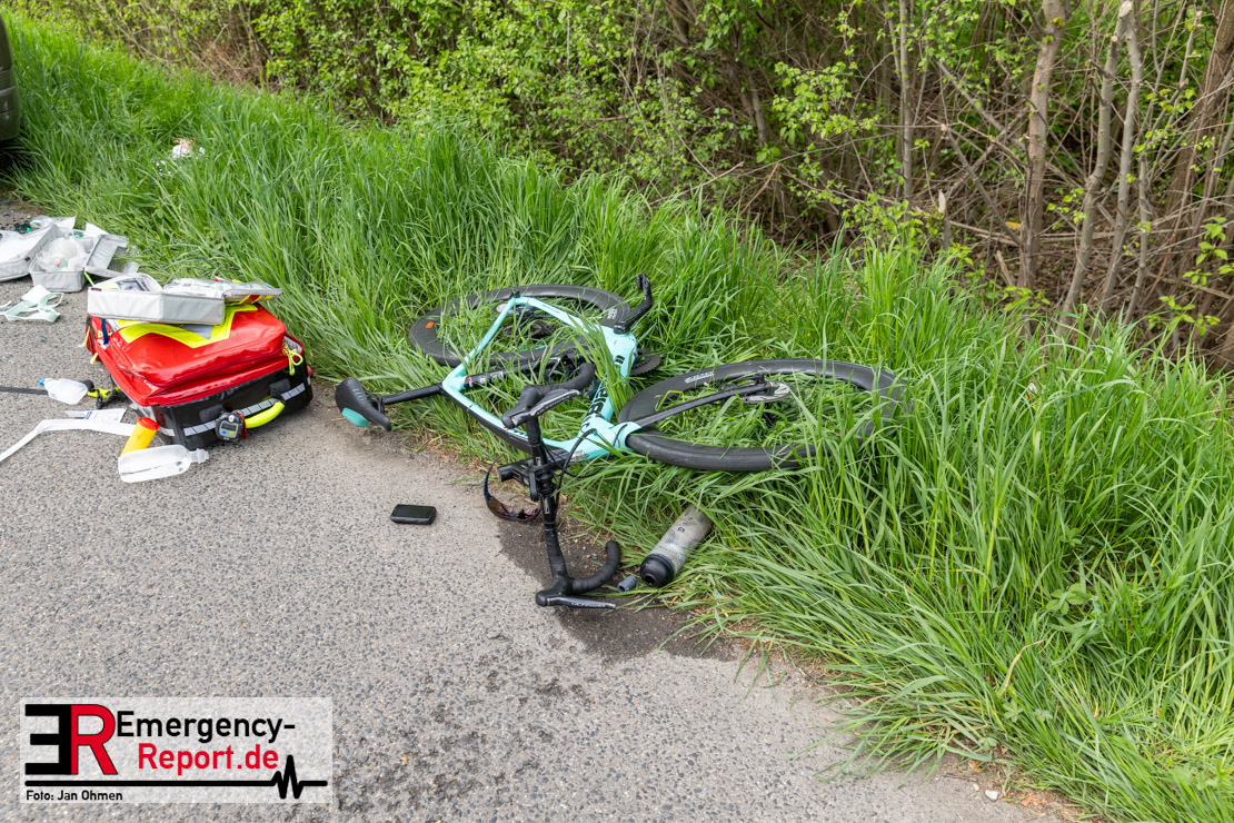Nach aktuellen Erkenntnissen befuhr ein 55-jähriger Korschenbroicher mit seinem Rennrad die L361 aus Richtung Grevenbroich kommend. Etwa in Höhe der Kreuzung zur L32 kollidierte der Radfahrer aus unbekannter Ursache mit einem auf dem Seitenstreifen stehenden Pkw. Durch den Zusammenstoß erlitt der Korschenbroicher lebensgefährliche Verletzungen und wurde mit einem Rettungshubschrauber in ein Krankenhaus verbracht. Eine in dem Pkw befindliche fünfköpfige Familie im Alter zwischen 5 und 38 Jahren, blieb unverletzt.