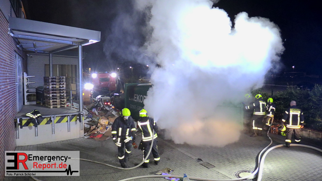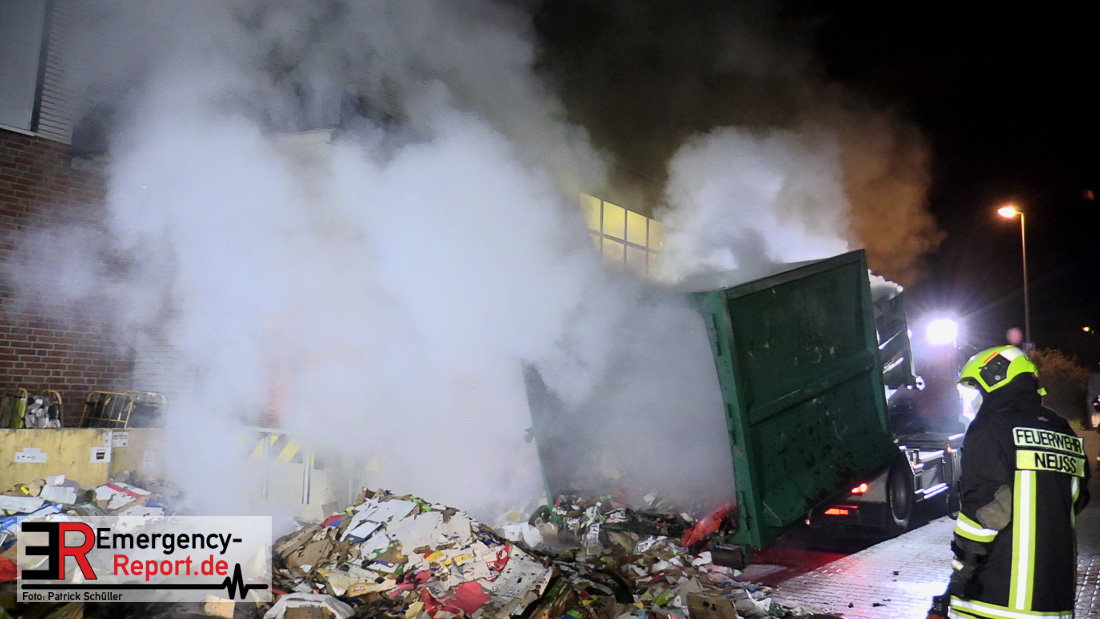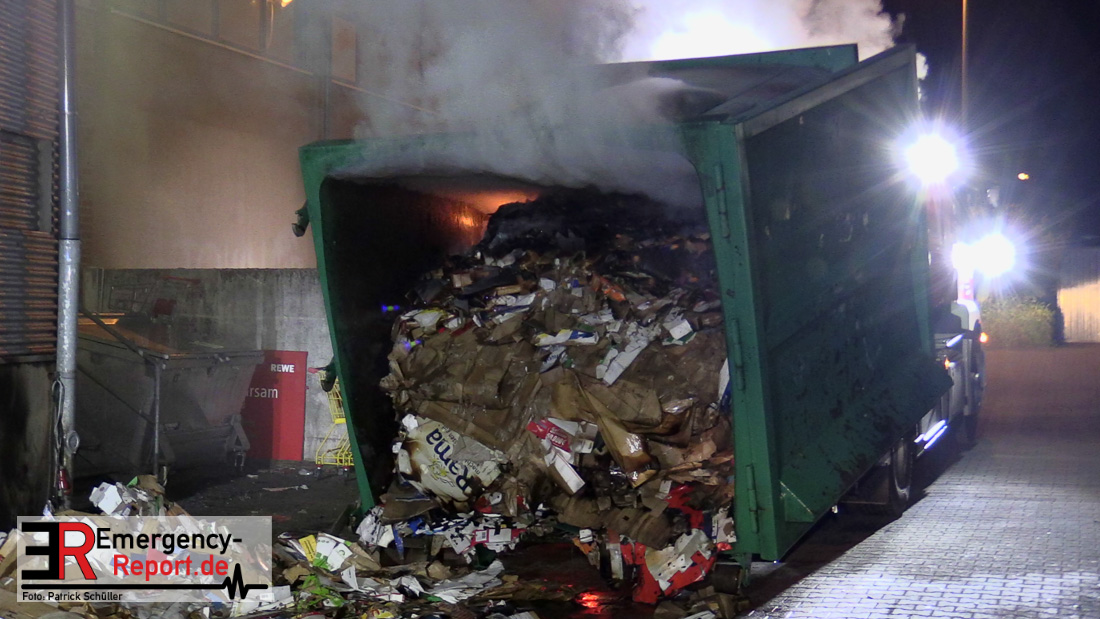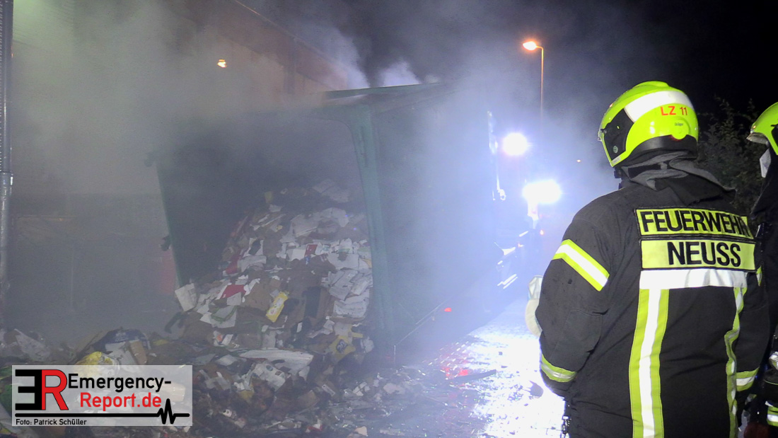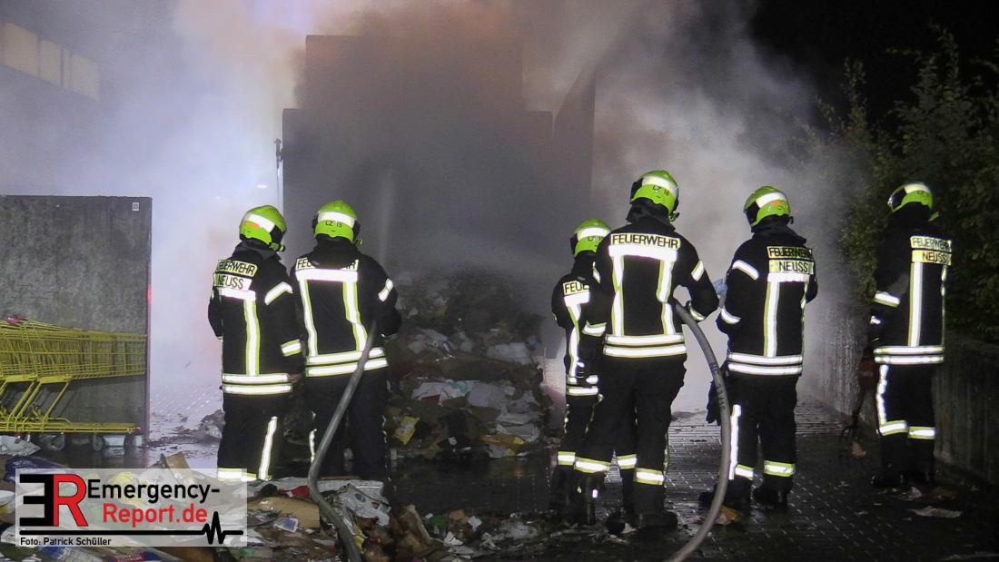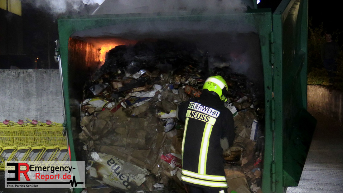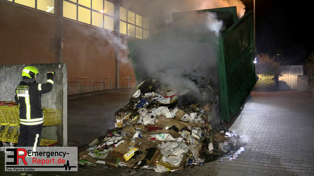 Die Feuerwehr Neuss wurde am Abend des 22.09.2021 zu einer Feuermeldung, auf die Straße „Am alten Bach“, alarmiert. Bei Eintreffen der Einsatzkräfte stellte sich heraus, dass eine Papierpresse, auf dem Gelände eines Supermarktes, brannte.