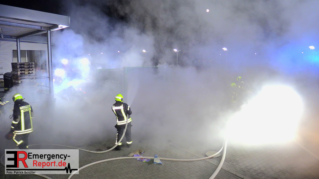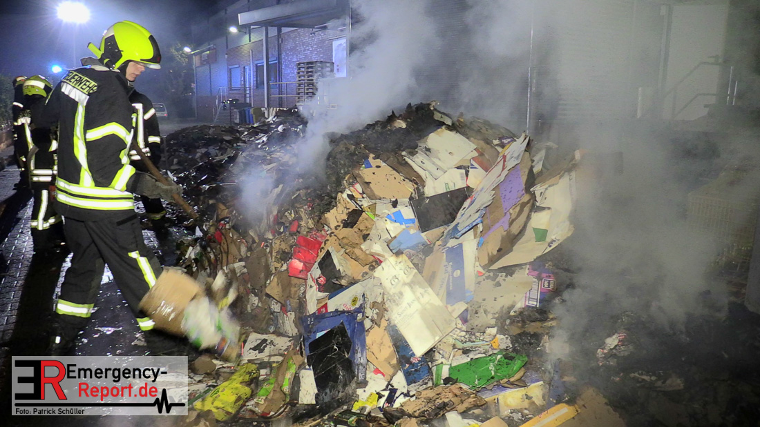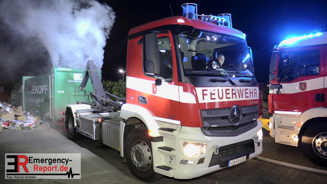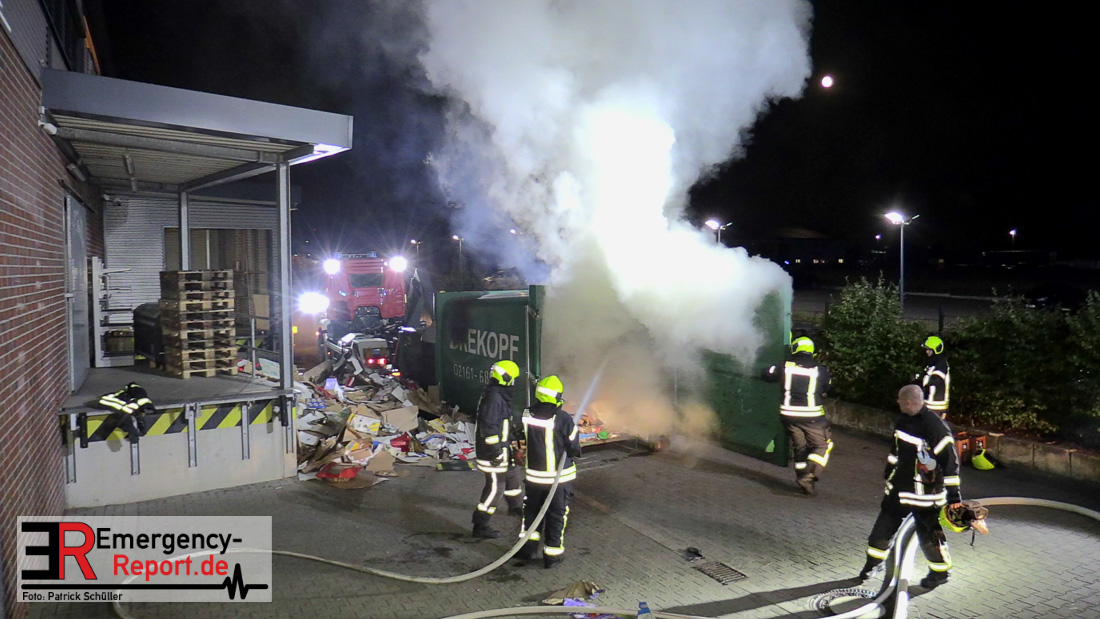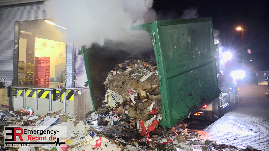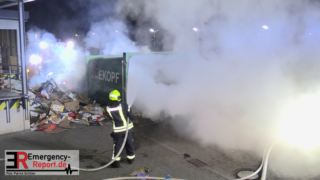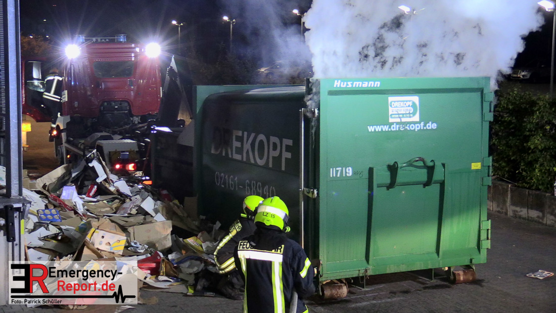 Die Feuerwehr Neuss wurde am Abend des 22.09.2021 zu einer Feuermeldung, auf die Straße „Am alten Bach“, alarmiert. Bei Eintreffen der Einsatzkräfte stellte sich heraus, dass eine Papierpresse, auf dem Gelände eines Supermarktes, brannte.