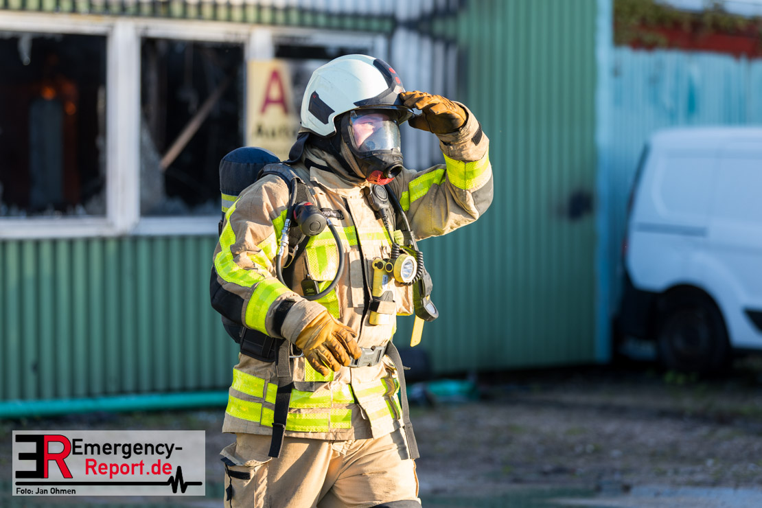 Gegen 21:30 Uhr war der Brand „unter Kontrolle“, so Einsatzleiter Brandoberinspektor Simon Wolter. „Die Gefahr einer Ausbreitung des Feuers war gebannt.“ Ein Ende des Einsatzes war am späten Donnerstagabend aber noch nicht absehbar. „Wegen der im Gebäude weiterhin vorhandenen Brandnester dauern die Löscharbeiten sicherlich noch mehrere Stunden an“, so Wolter.