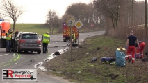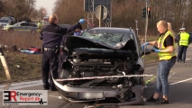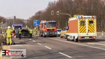 Grevenbroich (ots) – Am 25.03.2018 kam es um 15:15 Uhr zu einem folgenschweren Verkehrsunfall auf der L 116 in Höhe Gierather Weg. Ein 86-jähriger Fahrzeugführer aus Bergheim befuhr mit seinem PKW VW Golf zum Unfallzeitpunkt die L 116 aus Richtung BAB 46 kommend in Fahrtrichtung Bedburg. Zur selben Zeit beabsichtigte ein 58 – jähriger Kradfahrer, an der mit einer Lichtsignalanlage versehenen Kreuzung, vom Gierather Weg kommend, die L 116 in Richtung Grevenbroich zu queren. Mittig der Kreuzung kam es zum Zusammenstoß beider Fahrzeuge. Hierbei zog sich der Kradfahrer schwerste Verletzungen zu. Nach Erstversorgung vor Ort, wurde er mittels eines Rettungshubschraubers in eine Kölner Klinik geflogen. In die Unfallaufnahme wurden Kräfte des Zentralen Unfallaufnahmeteams, sowie ein Sachbearbeiter des Verkehrskommissariats Grevenbroich einbezogen, welcher die Ermittlungen zur Unfallursache aufgenommen hat. Für die Zeit der Unfallaufnahme wurde die Unfallstelle komplett gesperrt. Zu nennenswerten Verkehrsstörungen kam es nicht. Es entstand erheblicher Sachschaden. ( Esch. )