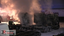 Dort brannten aus noch unbekannter Ursache drei nebeneinander stehende LKW aus, ein vierter wurde leicht beschädigt. Es entstand hoher Sachschaden.
