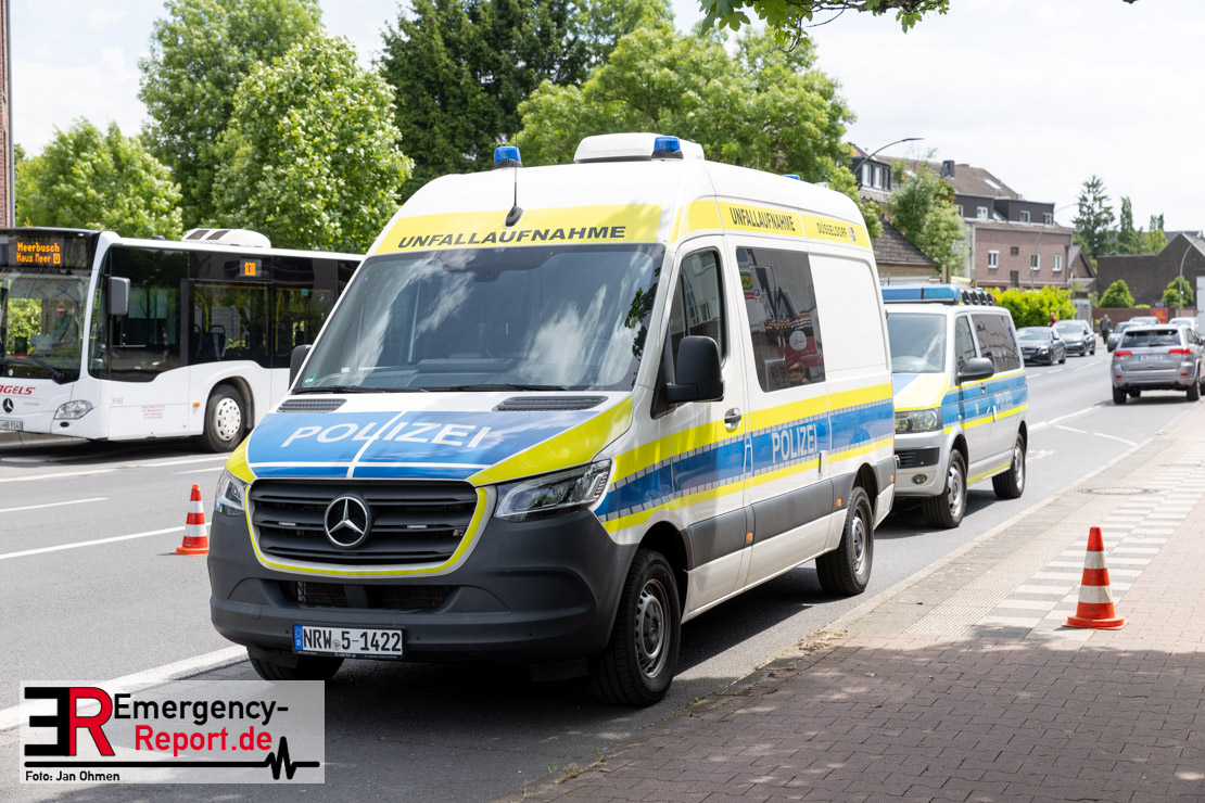 Für die Dauer der Unfallaufnahme, zu der auch ein spezialisiertes Unfallaufnahmeteam der Polizei hinzugezogen wurde, wurde die Moerser Straße gesperrt.
