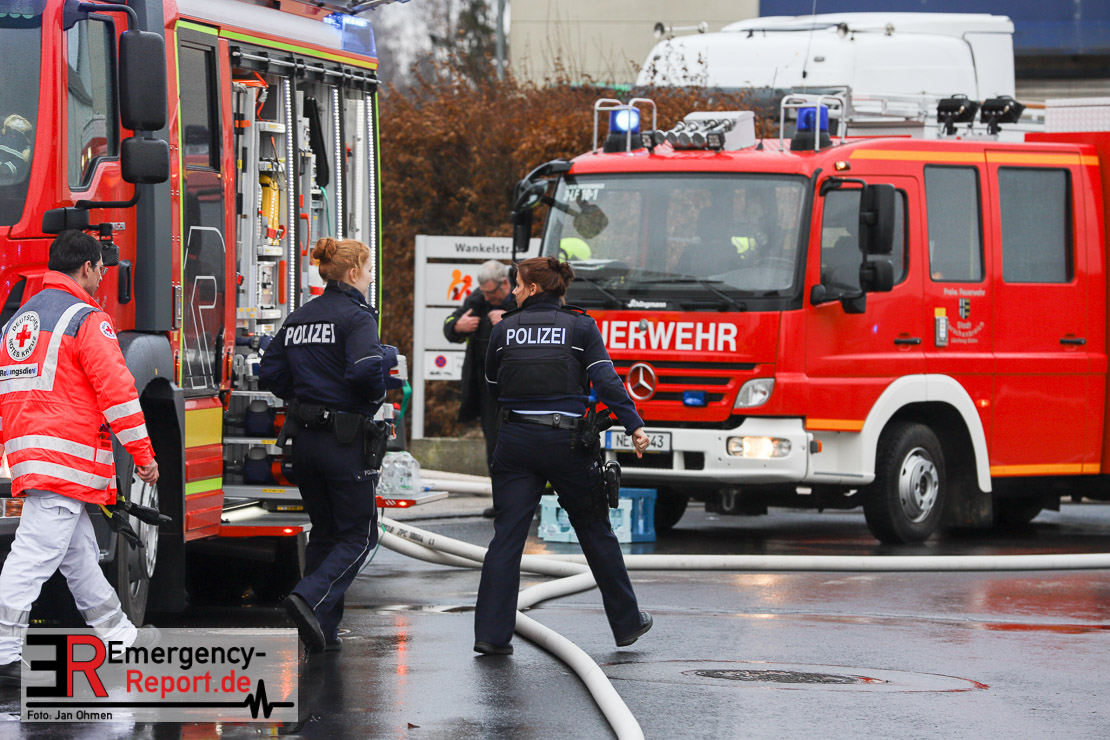 Die Feuerwehr Korschenbroich wurde gegen 12:50 Uhr zu einem Lagerhallenbrand auf die Wankelstraße alarmiert. Bereits auf der Anfahrt war eine massive Rauchwolke für die Einsatzkräfte sichtbar. Bei Eintreffen der Feuerwehr brannte die Halle bereits in voller Ausdehnung.