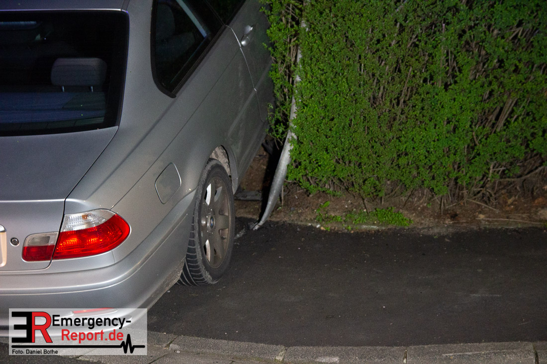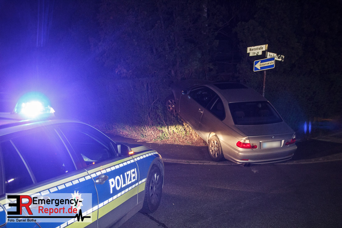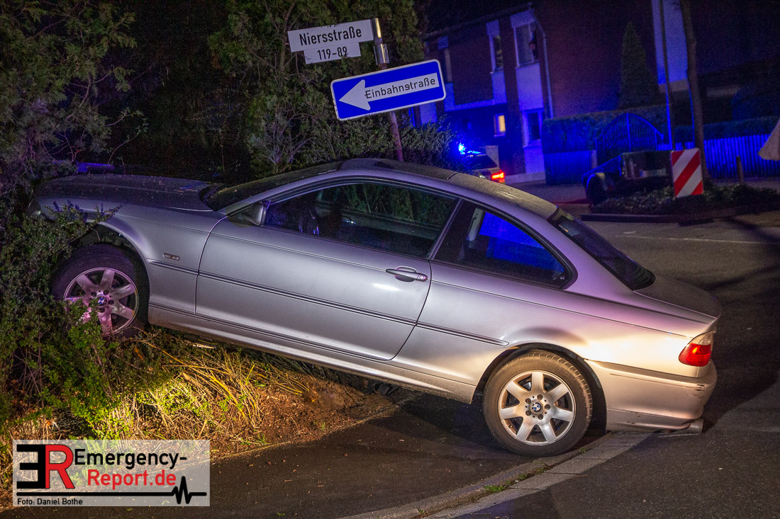 Gegen 23:15 Uhr beabsichtigte eine Polizeistreife bei einem BMW eine allgemeine Verkehrskontrolle durchzuführen. Der Fahrer versuchte sich dieser Kontrolle zu entziehen und ergriff die Flucht. An der Kreuzung Am Goldberg / Niersstraße bekam der Fahrer des BMW die Kurve nicht und parkte sein Fahrzeug in einer Hecke. Er wurde leicht verletzt durch den Rettungsdienst unter Polizeibegleitung in ein Krankenhaus transportiert. Wieso er sich der Kontrolle entziehen wollte ist derzeit noch unklar.