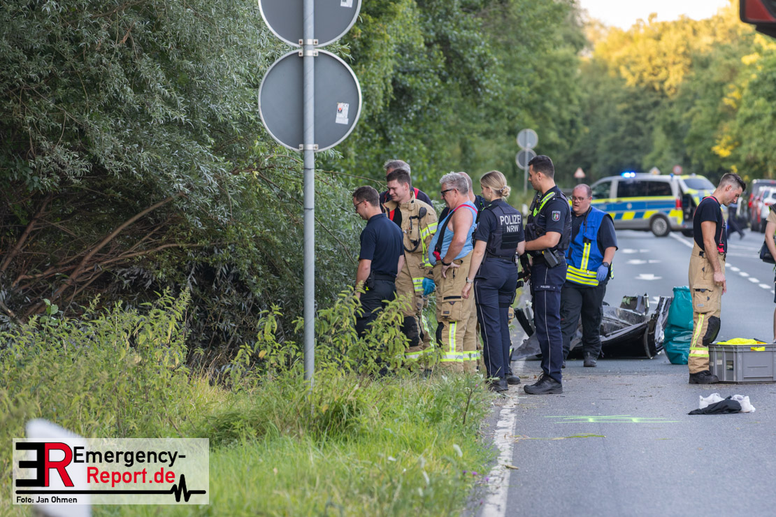 Bis zum Erscheinen der ersten Rettungskräfte leisteten mehrere Unbeteiligte Erst-Hilfe-Maßnahmen und kümmerten sich um die beiden Fahrzeuginsassen. Rettungswagen brachten die beiden schwerverletzten jungen Männer ins Krankenhaus.