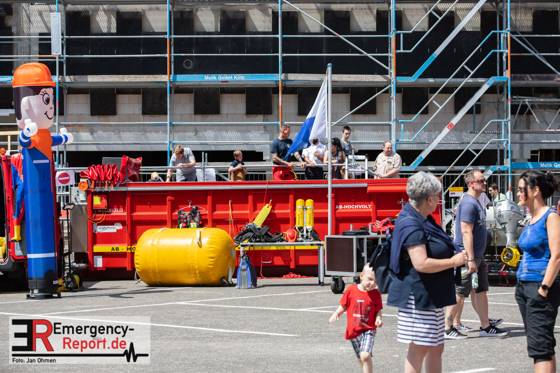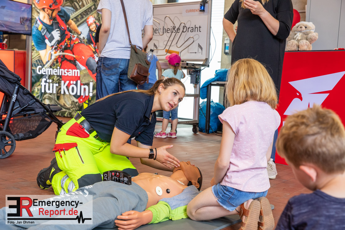 Neben zahlreichen Informationsangeboten gab es ab 10 Uhr jede Menge interaktive Angebote für Kinder und Erwachsene. Den ganzen Tag über hinweg konnten die Besucher eigenständig die neue Feuerwache 5 besichtigen. Die Höhenrettung und Tauchereinheit zeigten in Vorführungen ihr Können, Einsatzkräfte demonstrierten die technische Hilfeleistung aus einem Unfall-Pkw, die Freiwillige Feuerwehr Fühlingen präsentierte ihr Unterwasserortungsgerät und die Jugendfeuerwehr zeigte in einem nachgestellten Wohnungsbrand, was sie schon gelernt hat. Auch die Feuerwehrschule zeigte ihr Können: ein Grundlehrgang demonstrierte die Rettung aus einem Kellerbrand und zeigte, dass Wasser kein geeignetes Löschmittel bei einem Fettbrand ist. Die Kölschen Funkentöter gewährten in einem historischen Löschangriff einen Einblick, wie die Brandbekämpfung vor rund 150 Jahre funktionierte.