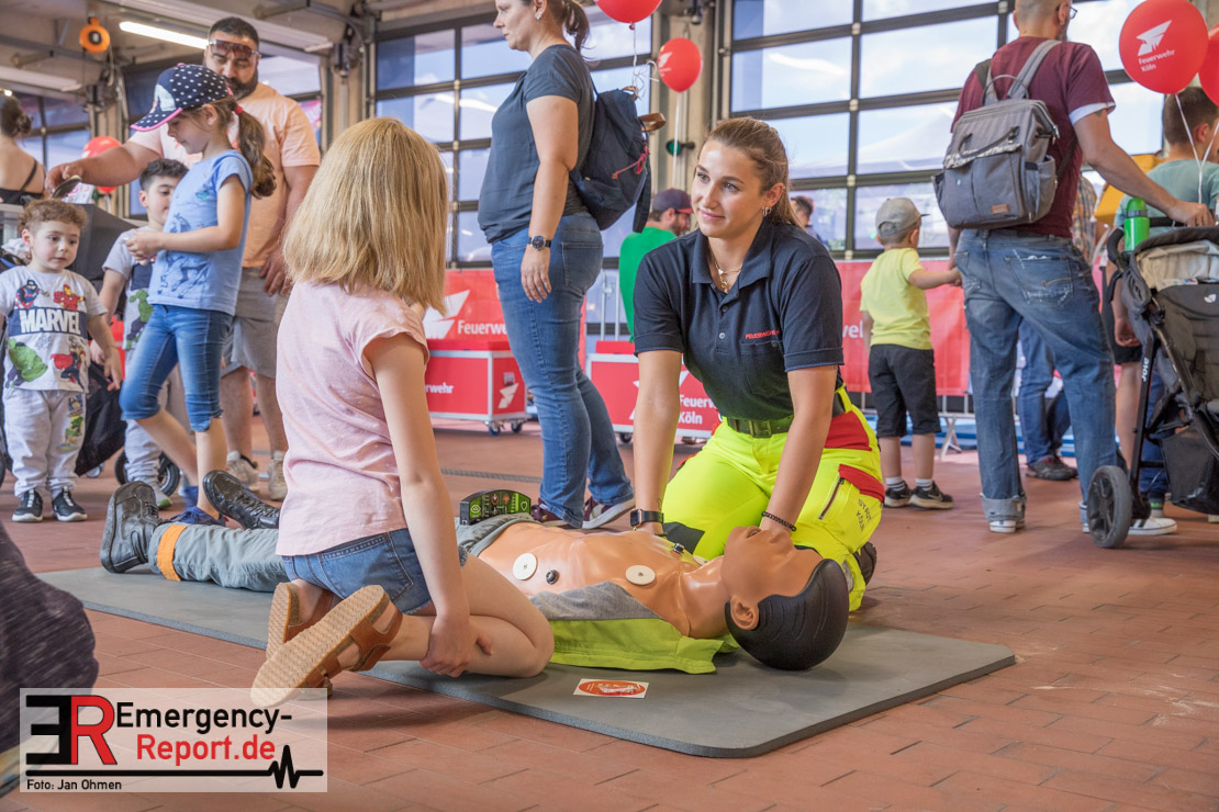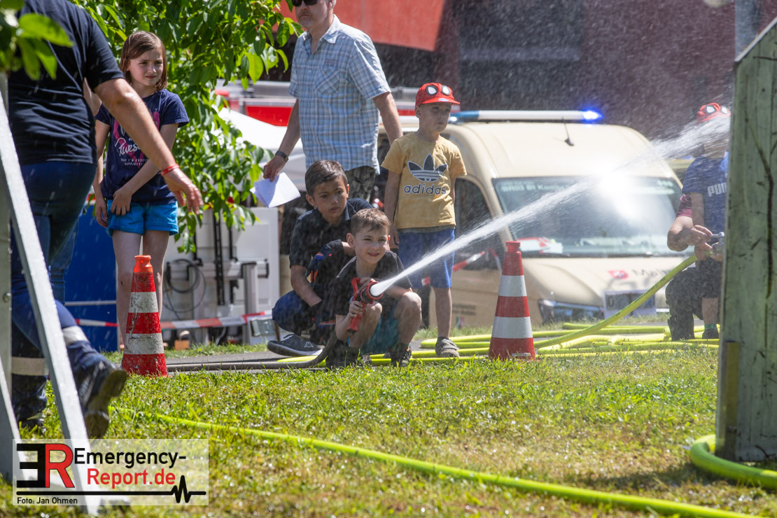Auf dem Gelände wurden Löschfahrzeuge, Sonderfahrzeuge, Rettungswagen und ein Rettungshubschrauber ausgestellt. Darüber hinaus gab es für Kinder und Jugendliche verschiedene Angebote und Mitmachaktionen wie Cartoonzeichnen und Strahlrohrzielschießen. Zudem stellten sich Sondereinheiten wie Dekontamination, Strahlenschutz, Fernmeldedienst, Tierrettung, Wasserförderung, Schaumlogistik und Psychosoziale Unterstützung vor.